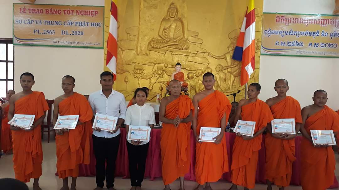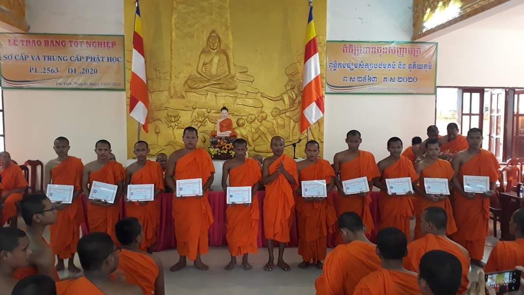 PSO - Chiều ngày 6/03/2020( nhằm ngày 13/02 năm Canh Tý), tại chùa Bodhisalaraja (chùa Kompong), Văn phòng Tỉnh hội (Phường 1, TP. Trà Vinh), Hội Đoàn kết Sư sãi Yêu nước tỉnh Trà Vinh tổ chức lễ trao bằng tốt nghiệp lớp Sơ cấp và Trung cấp Phật học trong không khí trang nghiêm và hân hoan.
