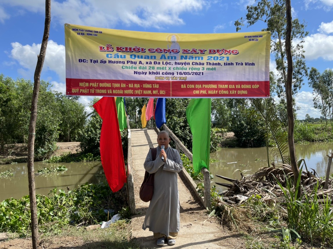 Được biết, kinh phí khởi công xây dựng cầu Quan Âm do SC. Thích Nữ Giác Thành - Trụ trì Niệm Phật Đường Tịnh Ân đã vận động quý Phật tử, Mạnh thường quân trong và ngoài nước phát tâm ủng hộ vật tư, bà con địa phương tham gia đóng góp công thợ và ngày công xây dựng phục vụ cho việc vận chuyển hàng hoá, sản xuất nông nghiệp, sinh hoạt đi lại của các em học sinh và bà con đồng bào dân tộc Khmer được thuận lợi nhằm phát triển kinh tế xã hội của địa phương.