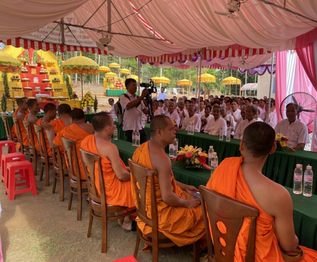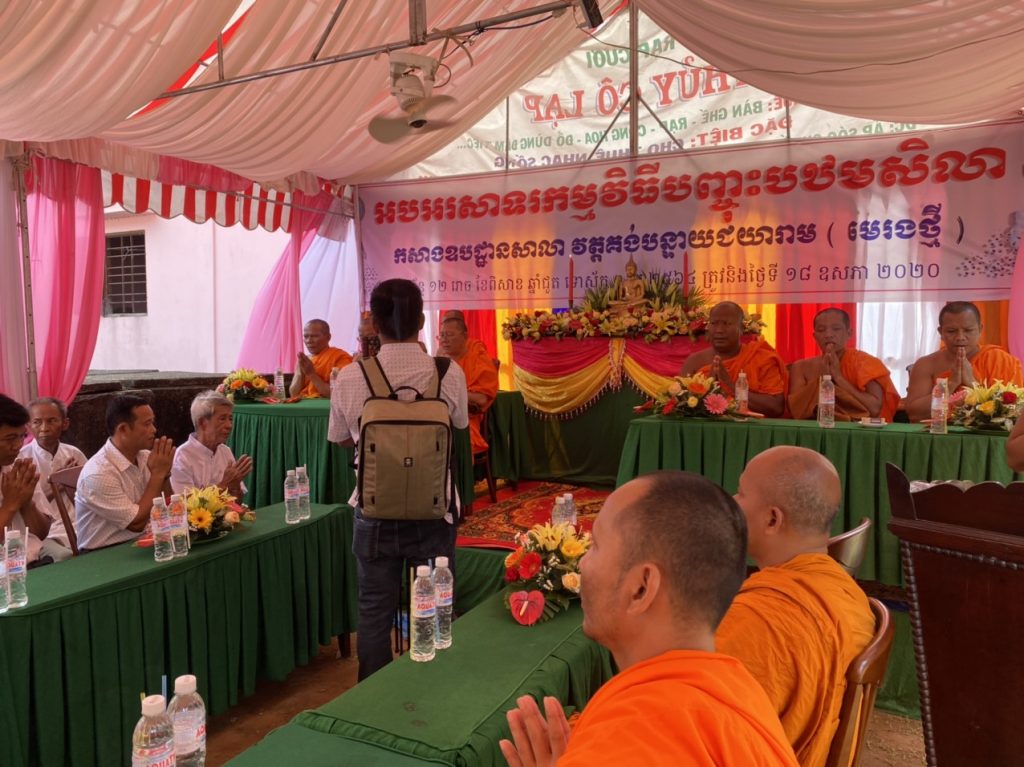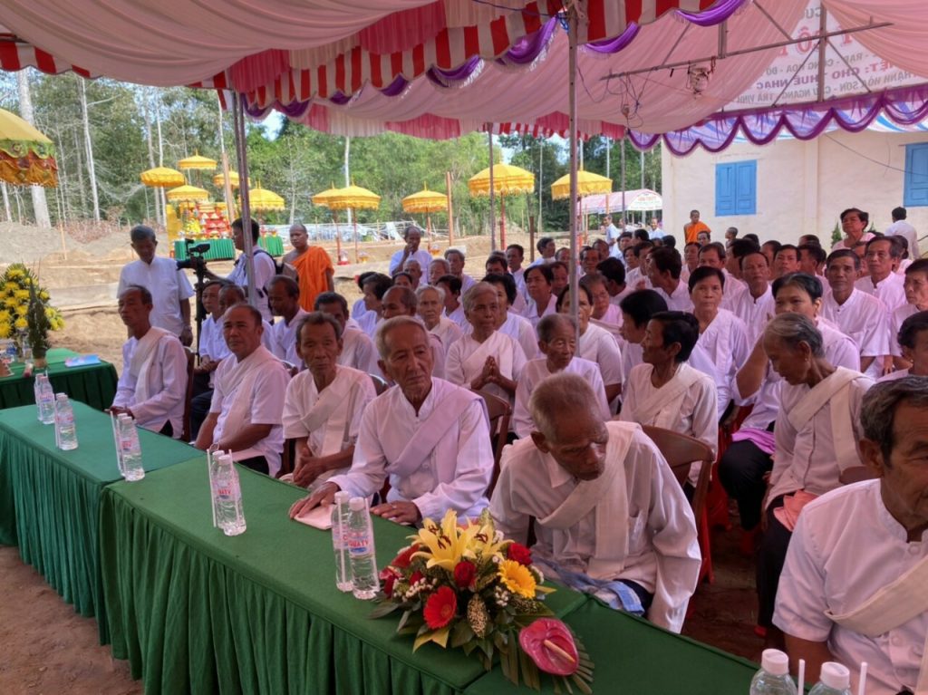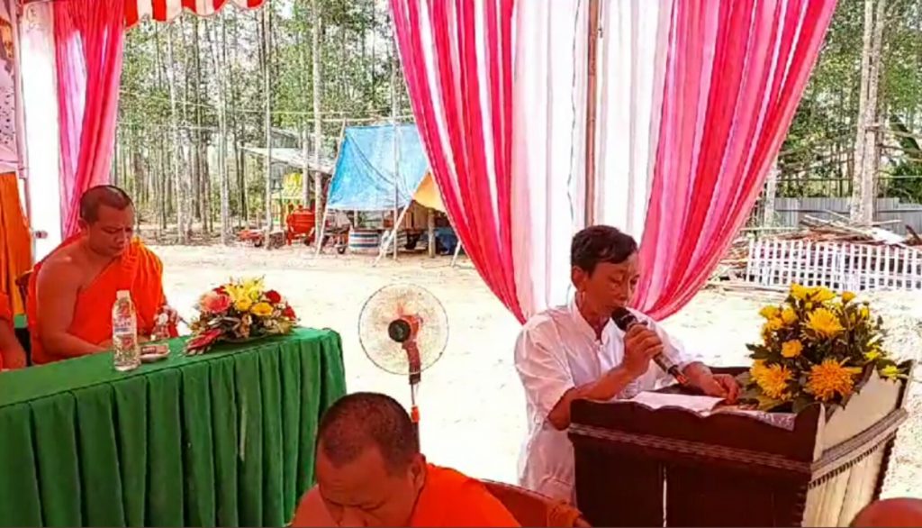 Kế đó, Ông Thạch Sô Khum - Thư ký chùa Mêrong Thmây, đã phát biểu thông qua danh sách chư Tăng, quý Phật tử đóng góp ủng hộ cho việc xây dựng Trai Đường của chùa. Tại buổi lễ, TT. Thạch Rây - Chủ tịch Hội ĐKSSYN huyện Cầu Ngang, thay mặt đã gửi lời tán thán những công hạnh của Đại đức Trụ trì chùa Mêrong Thmây, luôn luôn tích cực trong việc trùng tu, xây dựng các công trình tại chùa ngày một khang trang, góp phần vào việc giữ gìn và bảo vệ bản sắc văn hóa truyền thống của các bậc tiền nhân để lại.