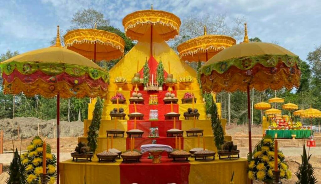 Mở đầu buổi lễ, ĐĐ. Thạch Đa Ra - Phó Chủ tịch Kiêm chánh Văn phòng Hội ĐKSSYN huyện, điều phối chương trình giới thiệu thành phần tham dự, thỉnh chư Tăng niệm Phật cầu gia bị. Tiếp đến, Ông Thạch Cô Chanh - Trưởng BQT chùa Mêrong Thmây, phát biểu tuyên bố lý do diễn ra lễ. Bên cạnh đó thay mặt cho BQT chùa, bày tỏ sự vui mừng và biết ơn đến chư Tôn đức, chính quyền địa phương cùng toàn thể quý Phật tử, đã dành thời gian quý báu đến tham dự buổi lễ. Đó là niềm vinh dự của bổn Tự, góp phần thêm phần trang nghiêm và viên mãn.