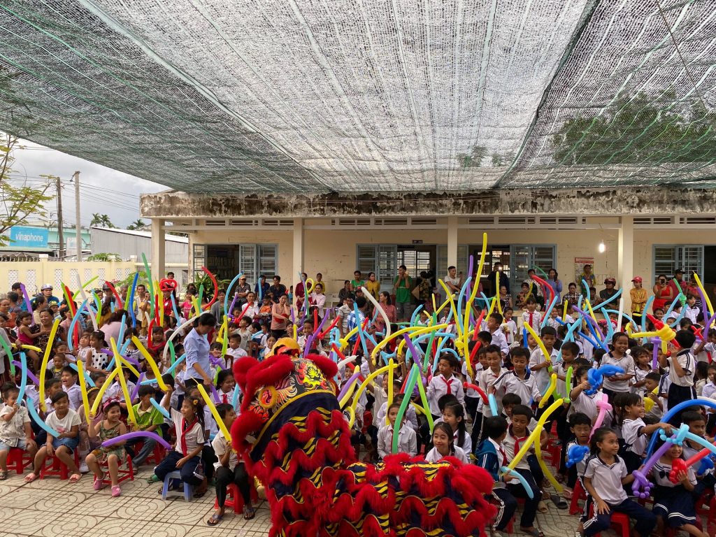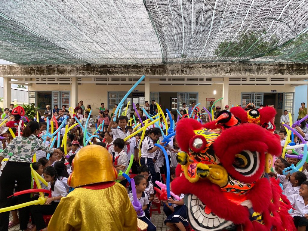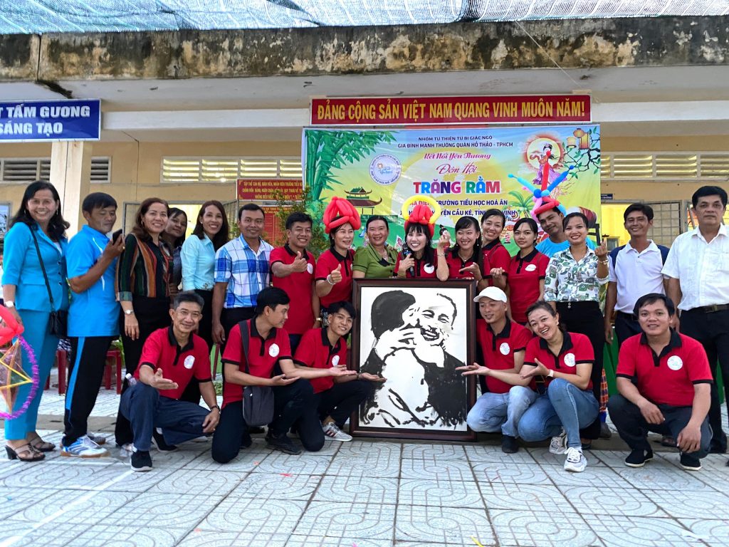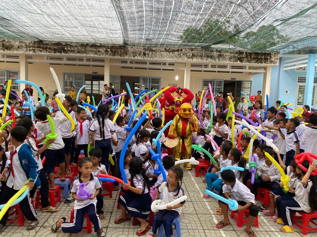 PSO - Nhắc đến Tết Trung thu, tất cả trẻ em đều hào hứng với các hoạt động xem múa lân, rước đèn, thưởng thức bánh, kẹo,... Tuy nhiên, do cuộc sống gia đình còn khó khăn nên một số em không có được cái Tết Trung thu trọn vẹn. Chia sẻ với những ước mơ về đêm hội trăng rằm của trẻ em nghèo, thừa uỷ nhiệm của Đại đức Thích Trí Huệ - Trưởng Phân ban Từ thiện Đối ngoại và Quan hệ (ĐN&QH) Quốc tế thuộc Ban Từ thiện Xã hội TƯ GHPGVN, PT. Huệ Ngọc Nhã - Uỷ viên Phân ban, Trưởng nhóm Từ bi Giác ngộ Kết nối Yêu thương đã tổ chức nhiều hoạt động, trao tặng gần 500 phần quà cho các em học sinh đón một cái Tết Trung thu thật vui tươi và hết sức ý nghĩa tại trường Tiểu học Hòa Ân B (Cầu Kè) và trường Tiểu học Long Sơn A (ấp Sóc Mới, xã Long Sơn, huyện Cầu Ngang, tỉnh Trà Vinh).