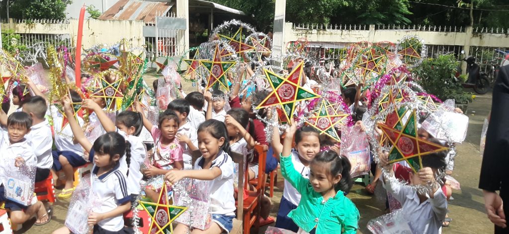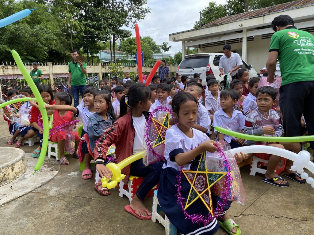 Theo đó, Ban Tổ chức chương trình trao gần 500 phần quà tại 02 trường Tiểu học, mỗi phần quà gồm: bánh trung thu, lồng đèn ông sao, kẹo, bong bóng kiểu …Tổng kinh phí cho chương trình lần này là 32 triệu đồng.