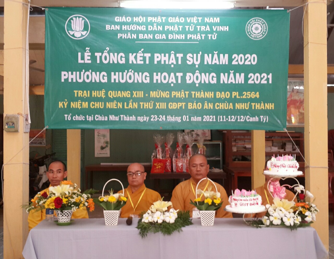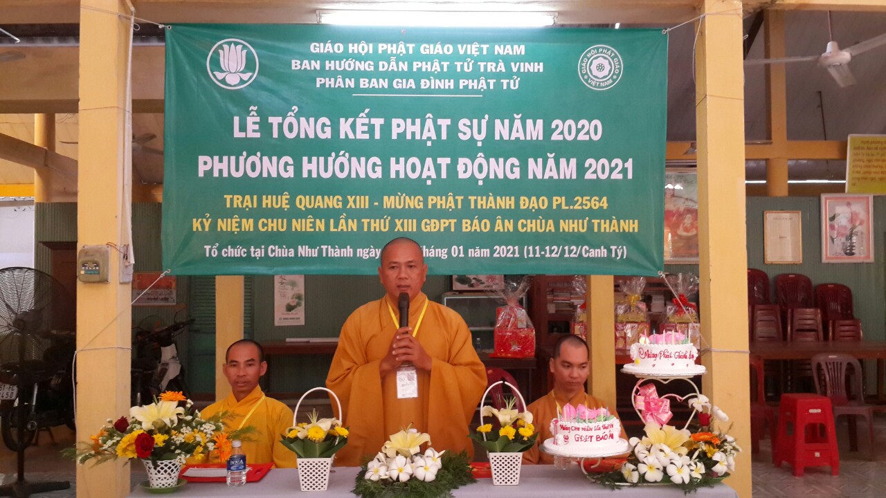 PSO - Sáng ngày 24/1/2021 (nhằm ngày 12/12 năm Canh Tý), Phân ban Gia đình Phật tử tỉnh Trà Vinh tổ chức lễ tổng kết Phật sự năm 2020; phương hướng hoạt động năm 2021; trại Huệ Quang XIII - Mừng Phật thành đạo PL.2564 và Kỷ niệm chu niên lần thứ XIII GĐPT Báo Ân tại chùa Như Thành (xã Song Lộc, huyện Châu Thành, tỉnh Trà Vinh).