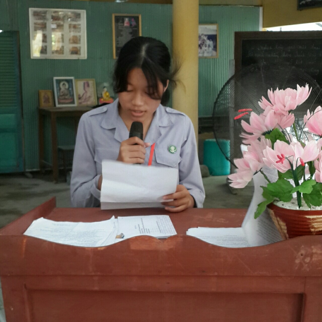 Đại diện cho đoàn sinh, ĐS. Nhuận Minh - Nguyễn Thị Minh Thư đã bày tỏ niềm vui khi được tu học và sinh hoạt trong GĐPT là một môi trường tốt cho việc học hỏi kiến thức Phật pháp cũng như kĩ năng hoà nhập vào cộng đồng để xứng đáng là một Phật tử chân chính, một công dân tốt và góp phần xây dựng lí tưởng GĐPT ngày càng phát triển".