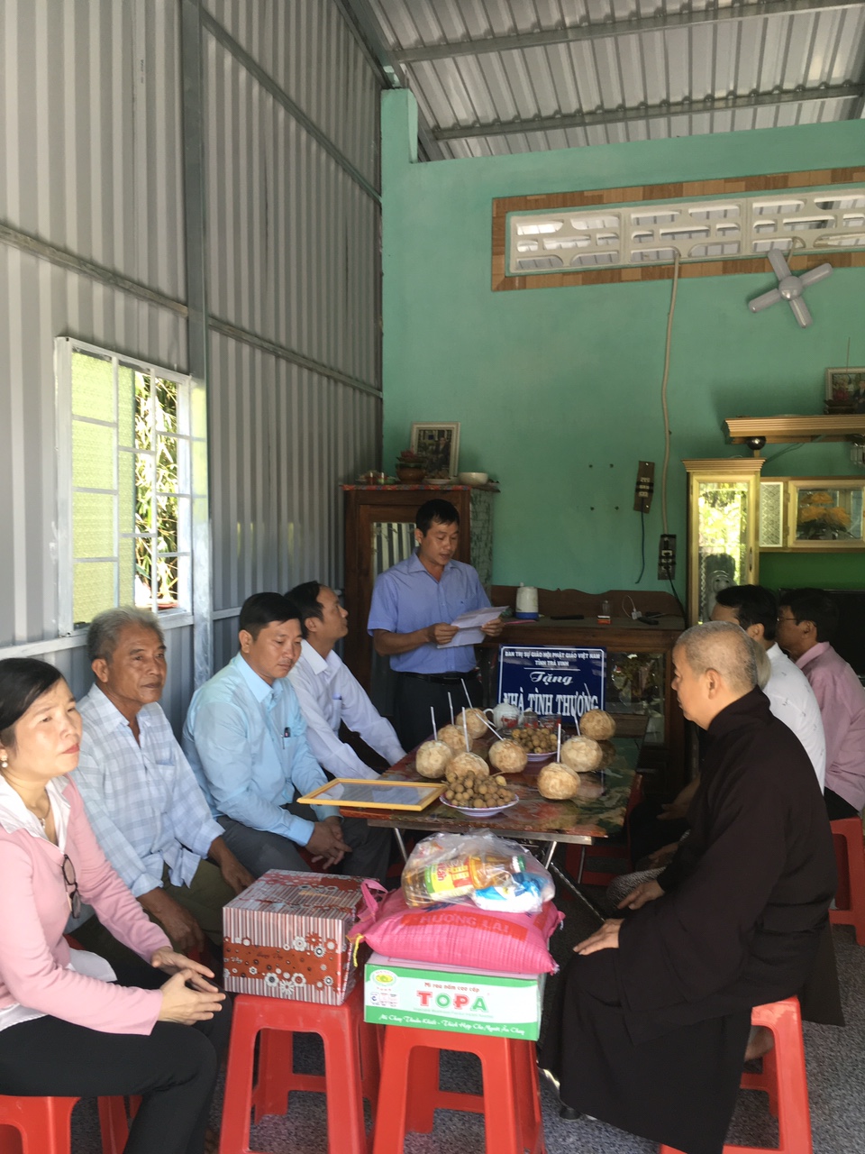 PSO - Tiếp theo hoạt động trao tặng nhà tình thương cho các hộ gia đình nghèo trong tháng 7/2020, vào ngày 04/9/2020 (nhằm ngày 17/7 năm Canh Tý), Thường trực BTS GHPGVN tỉnh Trà Vinh đã kết hợp với chánh quyền địa phương, tổ chức bàn giao 02 căn nhà tình thương tại xã Thanh Mỹ, huyện Châu Thành.