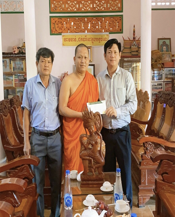 Dịp này, các đoàn trước là đảnh lễ Tam bảo, vấn an sức khỏe Đại đức trụ trì, toàn thể chư Tăng, ban quản trị cùng đồng bào Phật tử Khmer tại địa phương. Đồng thời, Tòa án Nhân dân huyện, cho biết thêm một số chính sách của Đảng, pháp luật của nhà nước một số Điều luật Tín ngưỡng Tôn giáo. Với mong muốn Đại đức tuyên truyền, phổ biến đến Phật tử, phải luôn chấp hành tốt để cùng địa phương giữ vững an ninh trật tự,... Sau cùng, đã gửi lời chúc tốt đẹp nhất đến toàn thể chư Tăng, Phật tử đón tết Chôl Chnăm Thmây "Vui tươi, hạnh phúc và tiết kiệm".
