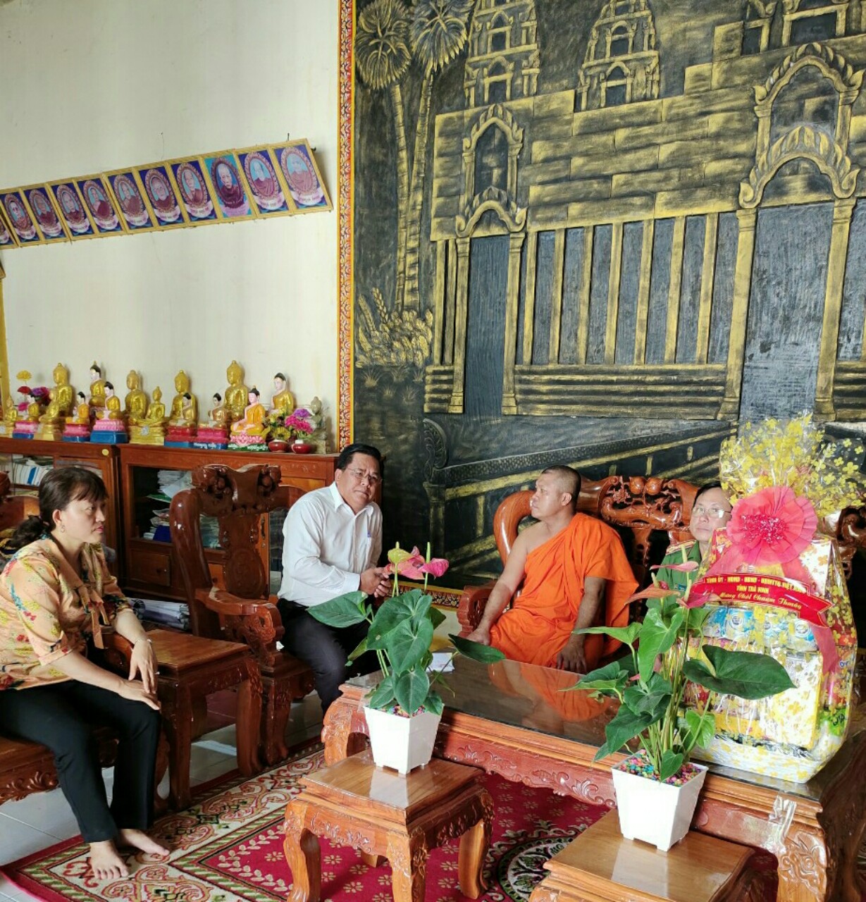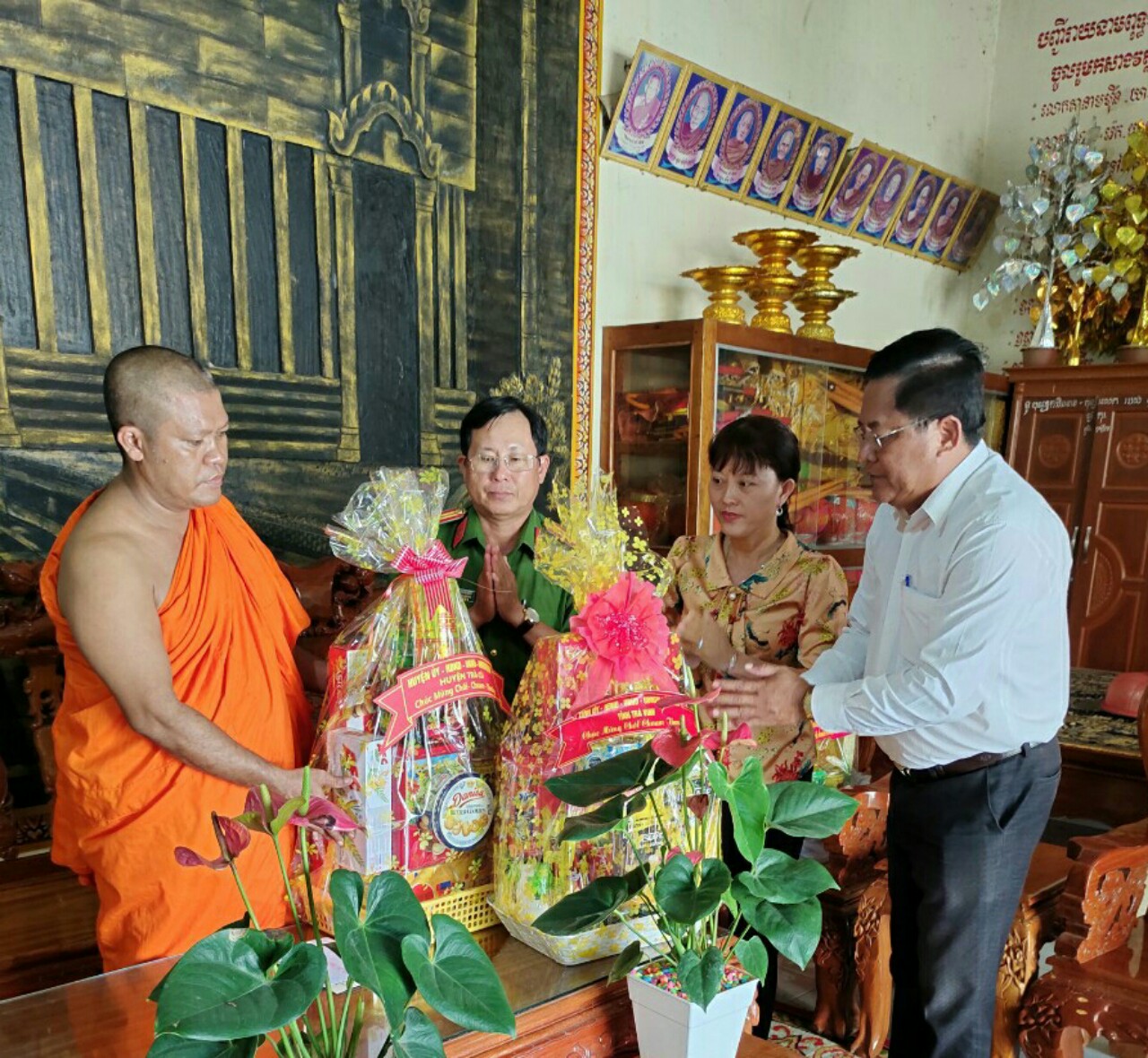 Thay mặt đoàn, ông Kim Sang cảm ơn Đại đức trụ trì đã tích cực vận động bà con Phật tử dân tộc Khmer, chấp hành tốt các chủ trương, chính sách của Đảng, pháp luật của nhà nước. Mong rằng, trong thời gian tới, Đại đức cùng chư Tăng bổn tự tiếp tục phát huy truyền thống yêu nước, đoàn kết dân tộc, tăng gia lao động sản xuất để phát triển kinh tế, đảm bảo an ninh, trật tự xã hội trong những ngày Tết Chôl Chnăm Thmây.
