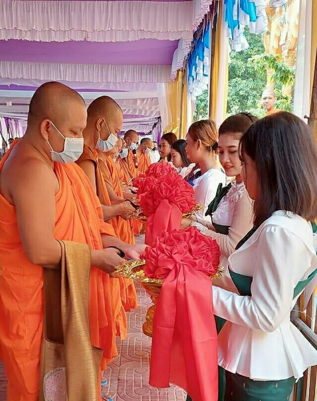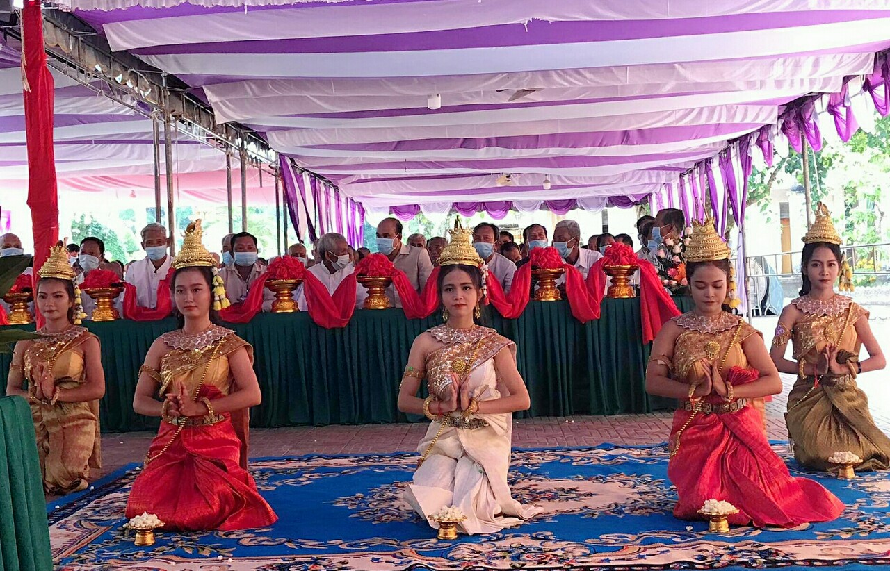 Sau tiết mục múa Rôbăm dâng hoa cúng dường, lễ cắt băng khánh thành Tăng Xá được bắt đầu và chư Tôn đức Tăng cùng đại chúng đã niệm Phật cầu gia hộ.