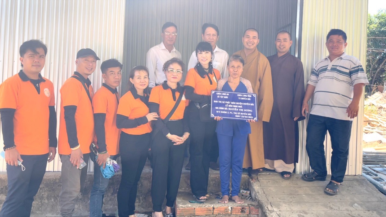 Biết được sự nguy hiểm đó nhưng với tình cảnh của cô lúc này, việc sửa chữa lại nhà là điều quá xa vời chưa bao giờ người phụ nữ ấy nghĩ đến. Trước những hoàn cảnh đó, chư Tôn đức đã kết hợp với nhóm thiện nguyện “Từ Bi Giác Ngộ Kết Nối Yêu Thương”, và em Nguyễn Thế Vũ Phong vận động kinh phí, tài trợ xây xây dựng lại ngôi nhà cho cô, với tổng kính phí là 40 triệu đồng, cô Sương góp thêm vào là 2.000.000 đồng. Đây là nguồn động viên kịp thời và ý nghĩa giúp cô Nguyễn Thị Sương có nhà ở và vượt lên khó khăn trong cuộc sống.