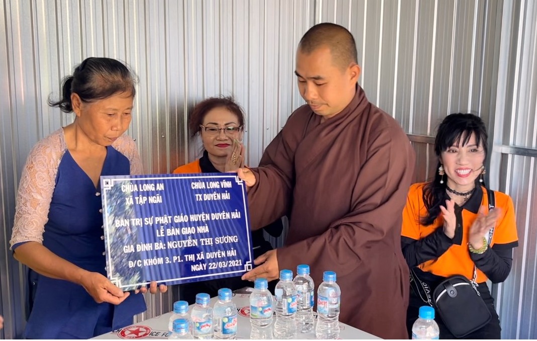 Thừa ủy nhiệm Đại đức Thích Trí Huệ - Trưởng Phân ban Từ thiện Đối ngoại và Quan hệ (ĐN&QH) Quốc tế, Trụ trì chùa Pháp Tạng (Lê Minh Xuân, huyện Bình Chánh, TP.HCM) vào ngày 16/04/2021 (nhằm ngày 06/03 năm Tân Sửu), PT. Huệ Ngọc Nhã (Diễm Nguyễn) - Ủy viên Phân ban, Trưởng nhóm thiện nguyện “Từ Bi Giác Ngộ Kết Nối Yêu Thương”, cùng các thành viên của nhóm đã trao nhà tình thương, trao quà cho bà con nghèo, hộ gia đình người cao tuổi neo đơn tại khóm 03, phường 01, huyện Duyên Hải, tỉnh Trà Vinh.