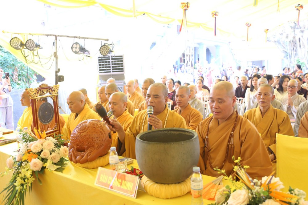 Ban lời huấn từ tại buổi lễ, Thượng tọa Thích Minh Nghiêm khuyến tấn Đại đức tân trụ trì trong việc “trụ pháp vương gia, trì Như Lai tạng”, làm tốt vai trò kế thừa, giữ gìn mạng mạch Phật pháp tại địa phương.