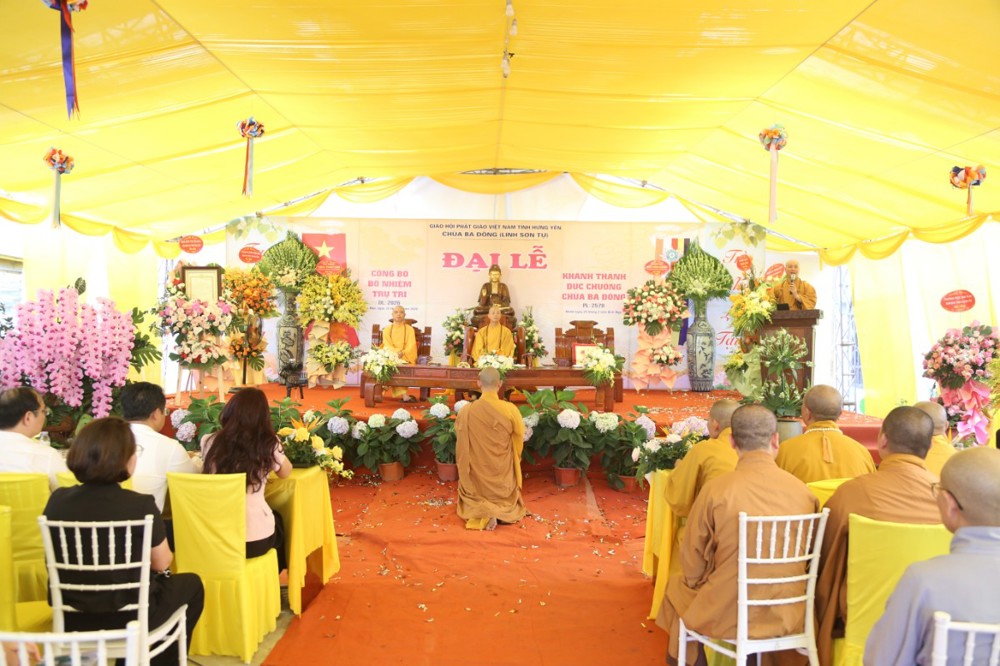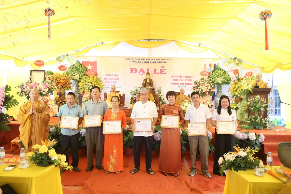 Quang lâm chứng minh và tham dự buổi lễ có Thượng tọa Thích Minh Nghiêm – Ủy viên Thường trực Hội đồng Trị sự, Trưởng Ban Trị sự GHPGVN tỉnh Phú Thọ; Đại đức Thích Thanh Quang – Phó Trưởng ban kiêm Chánh Thư ký Ban Trị sự GHPGVN tỉnh Hưng Yên; Thượng tọa Thích Thanh Khuê – Phó Trưởng ban Ban Trị sự GHPGVN tỉnh Hưng Yên; Đại đức Thích Thông Đạt – Phó Chánh Văn phòng Ban Trị sự GHPGVN tỉnh Hưng Yên; Đại đức Thích Thanh Thế – Ủy viên Ban Trị sự GHPGVN tỉnh Hưng Yên; cùng chư Tôn đức Tăng Ni và đông đảo nhân dân, Phật tử thập phương.