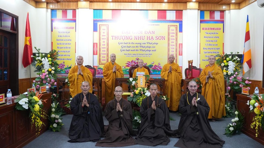 PSO - Chiều ngày 21/6/2025 (nhằm ngày 26/5 năm Ất Tỵ), tại Trung tâm Phật giáo Trúc Lâm Thiên Trường (tỉnh Nam Định), Ban Trị sự GHPGVN tỉnh Nam Định kết hợp cùng tỉnh Yên Bái và tỉnh Thanh Hóa đã trang nghiêm tổ chức Đại giới đàn Như Sơn để truyền trao giới pháp cho các Giới tử cầu Giới Sa Di, Sa Di Ni, Thức Xoa Ma Na, Tỳ Khiêu, Tỳ Khiêu Ni và Bồ Tát giới.