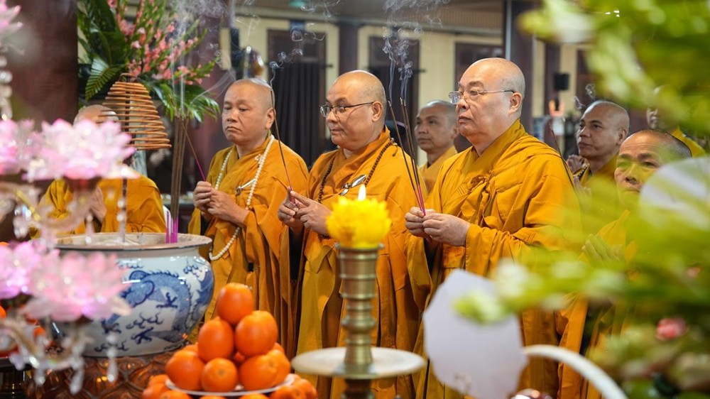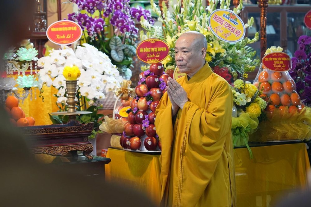 Với tất cả tấm lòng chí thành chí kính, chư tôn đức lãnh đạo Trung ương Giáo hội Phật giáo Việt Nam đã quang lâm nơi Giác linh đường, thành kính dâng hương đỉnh lễ tưởng niệm, nhất tâm cầu nguyện giác linh Cố Đại lão Hòa thượng cao đăng Phật quốc, thùy từ chứng giám và gia hộ cho Phật pháp xương minh, Tăng đoàn hòa hợp, quốc thái dân an, muôn loài chúng sinh đồng triêm lợi lạc.