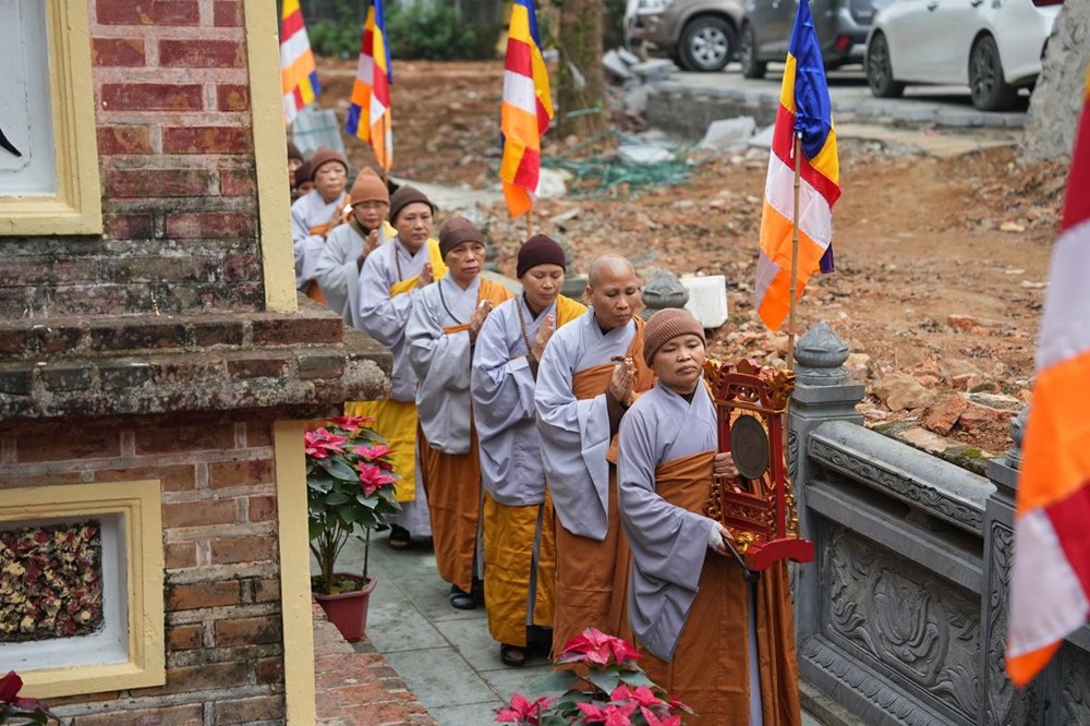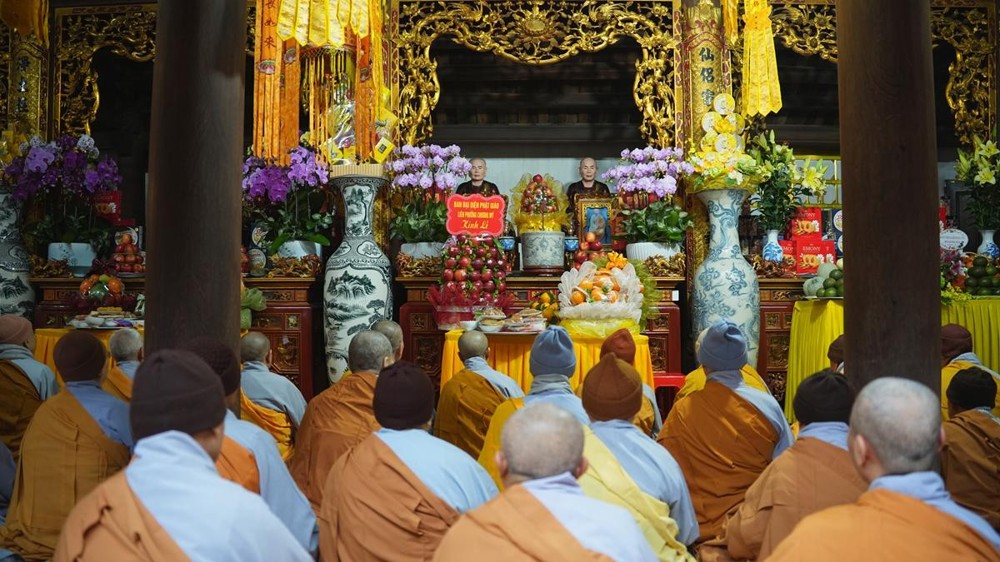 Tại đây, chư Tôn đức đã trang nghiêm cử hành các nghi thức cúng Phật, cúng Tổ và tụng thời kinh A Di Đà, cầu nguyện Giác linh cố Ni trưởng cao đăng Phật quốc, đồng thời thành kính tưởng niệm, tri ân công đức một bậc Ni lưu khả kính đã trọn đời hiến dâng cho sự nghiệp hoằng dương Chính pháp, phụng sự Đạo pháp và Dân tộc.