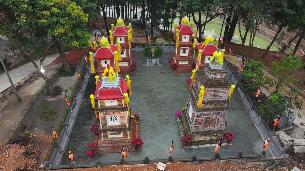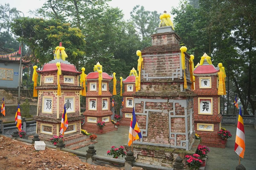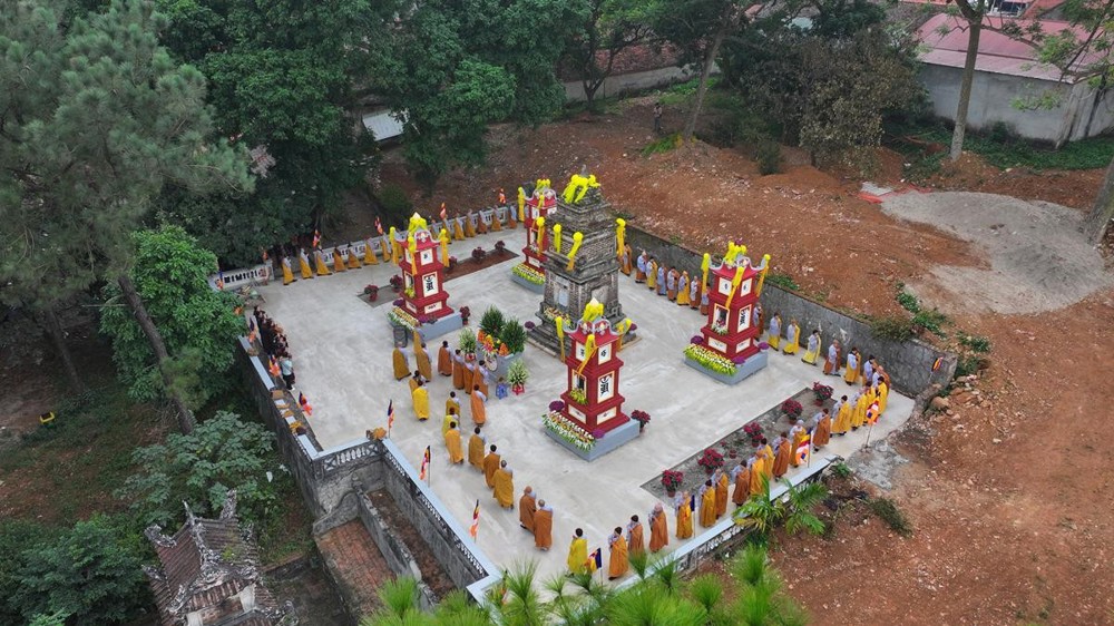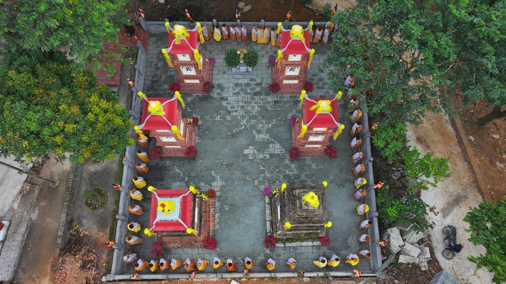 Song song đó, tại khu vực tháp Tổ, chư Tôn đức Ni cùng đại chúng đã thành kính dâng hương, tụng kinh A Di Đà, niệm Phật nhiễu tháp, nhất tâm hướng vọng về Giác linh cố Ni trưởng Thích Đàm Hiền, đồng thời tưởng niệm chư vị lịch đại Tổ sư – những bậc tiền nhân đã khai sơn, trùng hưng và gìn giữ ngôi cổ tự chùa Trăm Gian qua nhiều thế hệ.