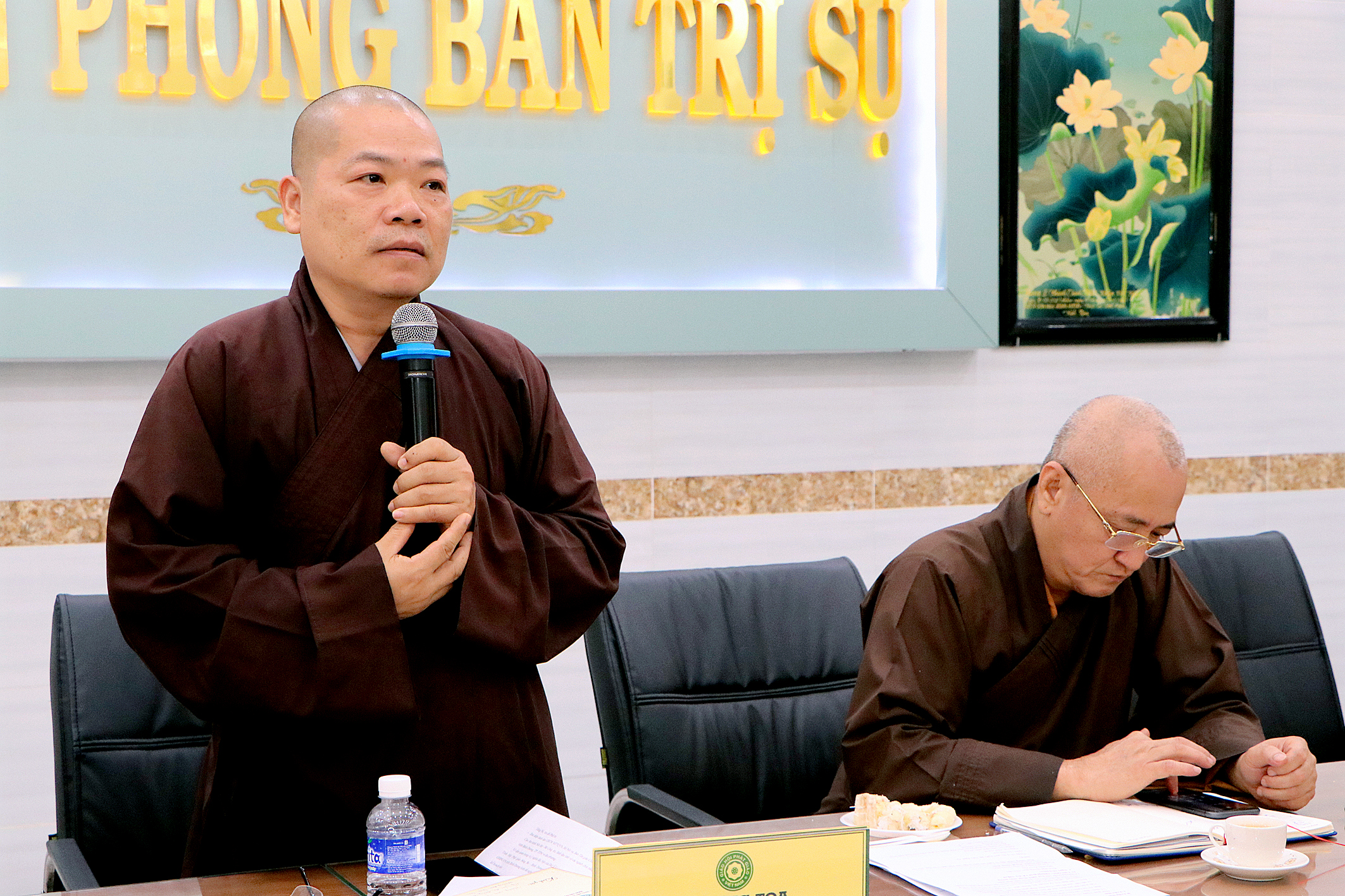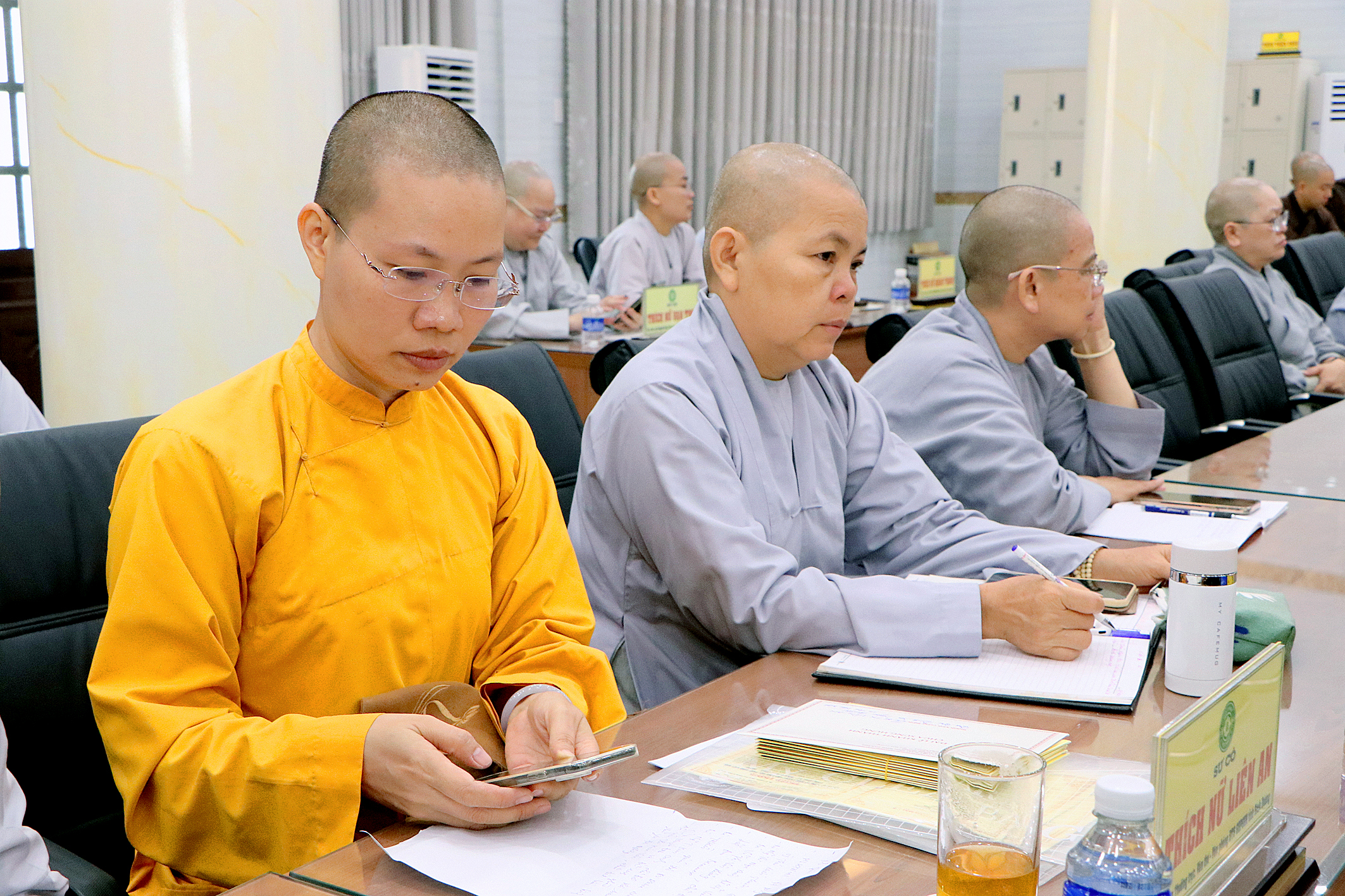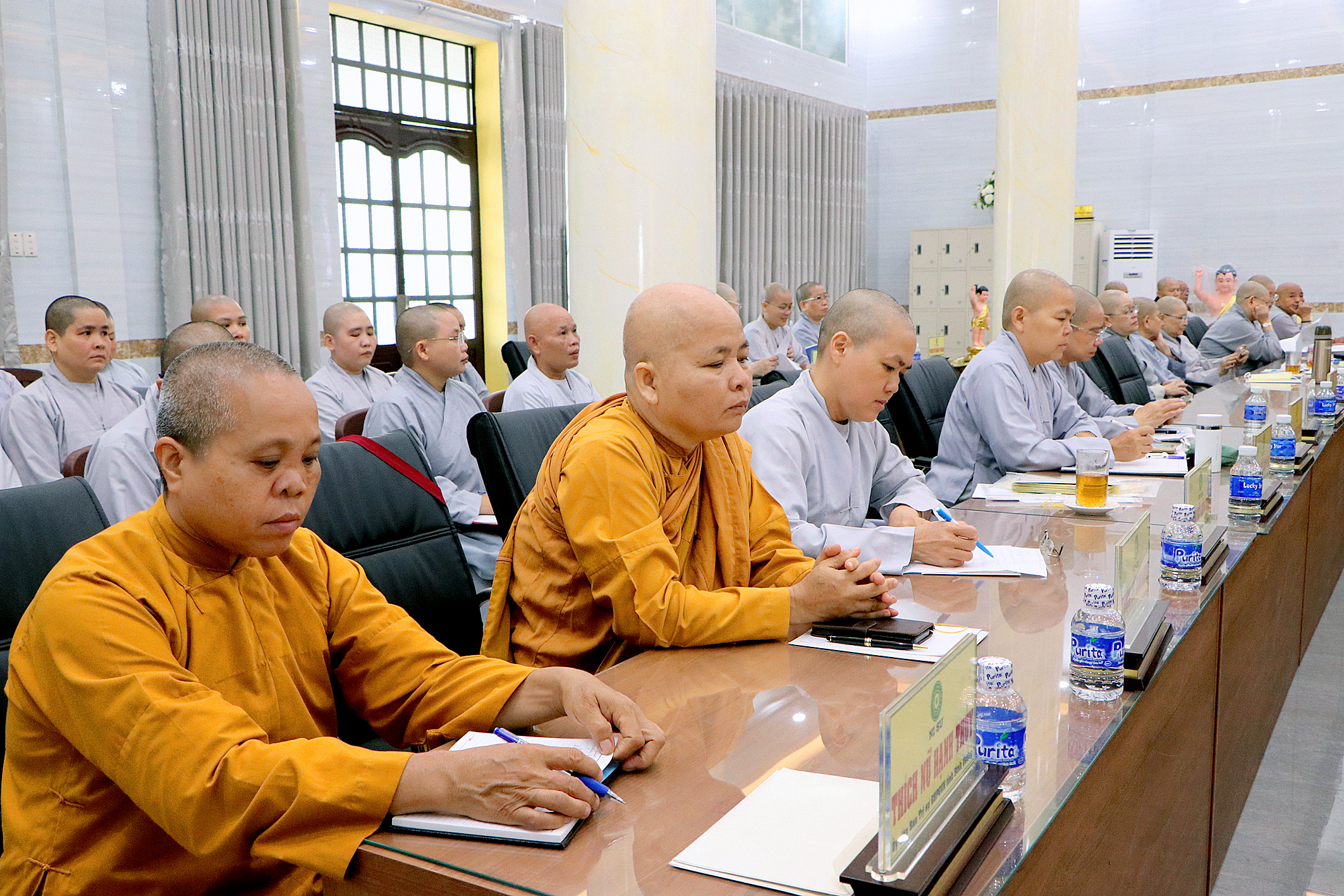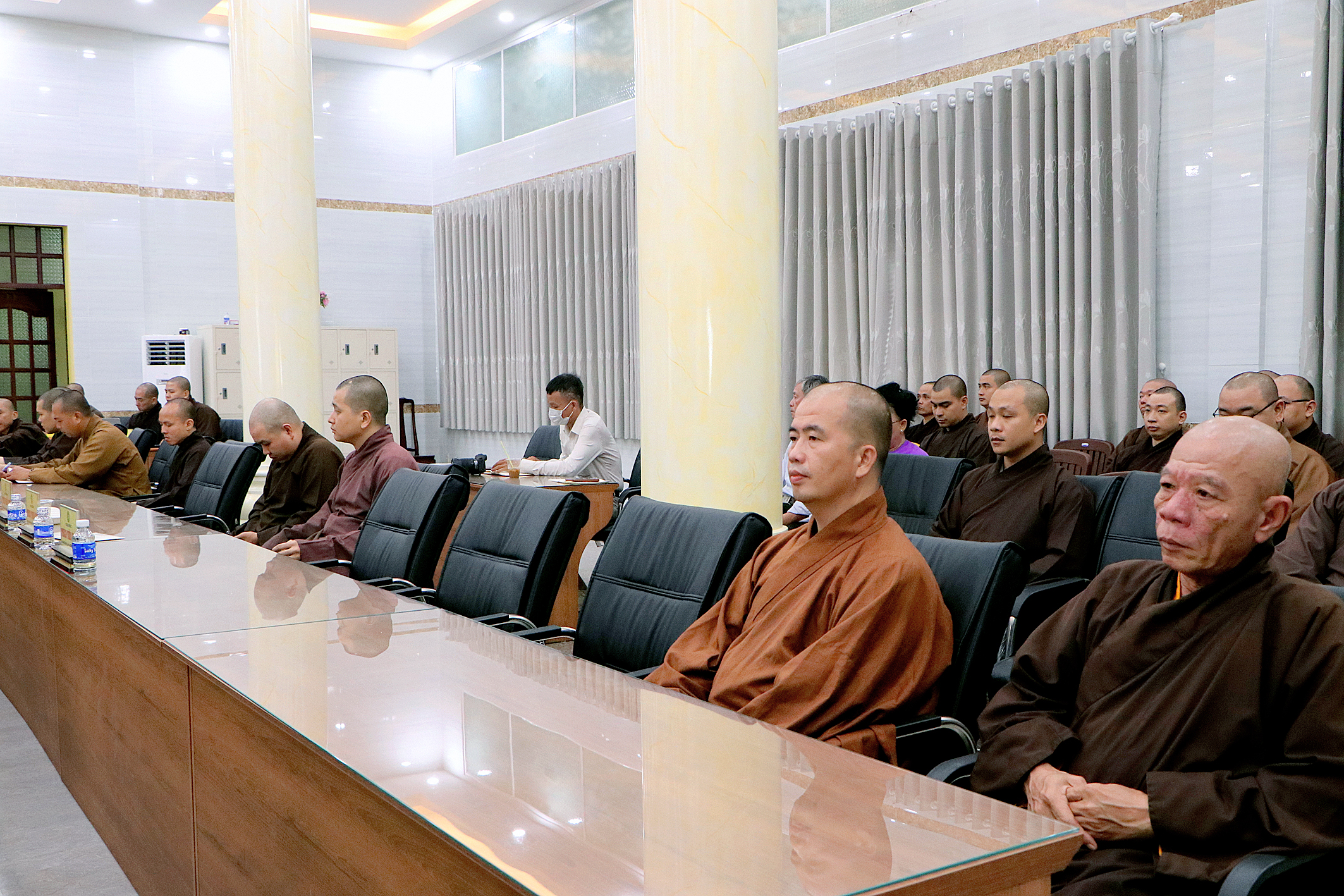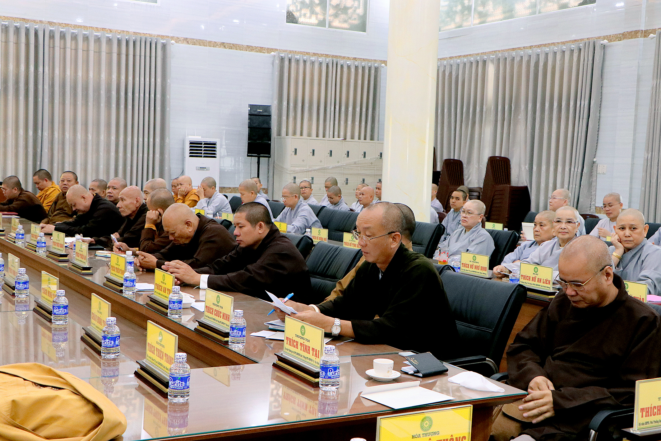Quang lâm chứng minh và chủ trì phiên họp có: Hòa thượng Thích Huệ Thông – Phó Chủ tịch HĐTS, Trưởng ban Pháp chế Trung ương, Trưởng ban Trị sự GHPG Việt Nam tỉnh Bình Dương; HT. Thích Thiện Duyên – Ủy viên HĐTS, Phó ban Thường trực BTS GHPGVN tỉnh; TT. Thích Chơn Phát - Uỷ viên HĐTS, Phó BTS kiêm Trưởng ban Giáo dục Phật giáo tỉnh; TT. Thích Minh Vũ – Phó BTS, Trưởng ban Hoằng pháp Phật giáo tỉnh; TT. Thích Minh Lực – Phó ban Trị sự, Trưởng ban Phật giáo Quốc tế GHPGVN tỉnh; ĐĐ. Thích Thiện Hưng - Phó ban Trị sự, Trưởng ban Thông tin Truyền thông PG tỉnh; Ni trưởng Thích nữ Pháp Như – Phó ban Trị sự, Trưởng Phân ban Ni giới GHPGVN tỉnh; Ni sư Thích nữ Từ Thảo – Ủy viên HĐTS, Phó trưởng Phân ban kiêm Trưởng ban Pháp chế Phân ban Ni giới TƯ, Phó BTS kiêm Trưởng ban Kinh tế Tài chánh GHPGVN tỉnh; TT. Thích Huệ Tín – Chánh Thư ký Ban Trị sự Phật giáo tỉnh; ĐĐ. Thích Đức Dũng – Phó Thư ký kiêm Chánh Văn phòng Ban Trị sự Phật giáo tỉnh; ĐĐ. Thích Huệ Nghiêm – Phó Thư ký kiêm Phó Văn phòng Ban Trị sự Phật giáo tỉnh; cùng chư Tôn đức Tăng Ni Thường trực BTS, các ban chuyên trách, chư Tôn đức Tăng Ni 09 huyện, thị, thành phố trực thuộc Phật giáo tỉnh Bình Dương và đặc biệt có Ông Trần Đức Thịnh - Phó Giám đốc Sở Nội vụ, Trưởng ban Tôn giáo tỉnh Bình Dương đồng tham dự.