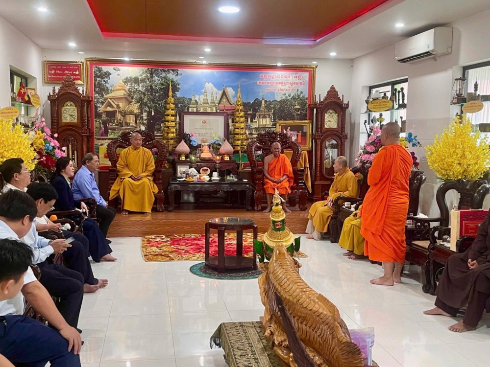 Dịp này, đoàn cũng đã đến thăm và chúc Tết Trưởng lão Hòa thượng Chau Ty – Phó Pháp chủ Hội đồng Chứng minh GHPGVN, bày tỏ sự kính trọng sâu sắc và tri ân đối với những đóng góp to lớn của chư Tôn đức trong sự nghiệp hoằng dương Chánh pháp và xây dựng khối đại đoàn kết toàn dân tộc.