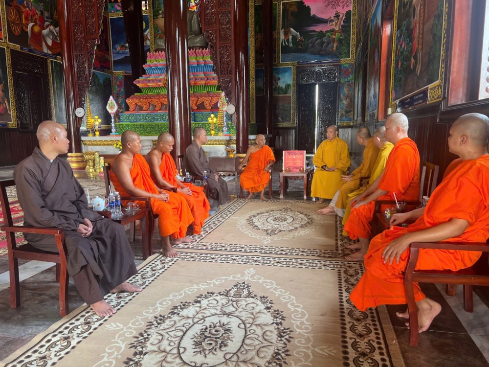 Mở đầu chương trình, đoàn đã đến thăm và khánh chúc Hòa thượng Đào Như – Phó Chủ tịch HĐTS, Viện trưởng Học viện Phật giáo Nam tông Khmer, Trưởng ban Trị sự GHPGVN TP. Cần Thơ tại Học viện Phật giáo Nam tông Khmer. Tại đây, Thượng tọa Trưởng đoàn đã ân cần thăm hỏi sức khỏe, ghi nhận những đóng góp quan trọng của Hòa thượng trong công tác đào tạo Tăng tài và phát triển hệ phái Nam tông Khmer.