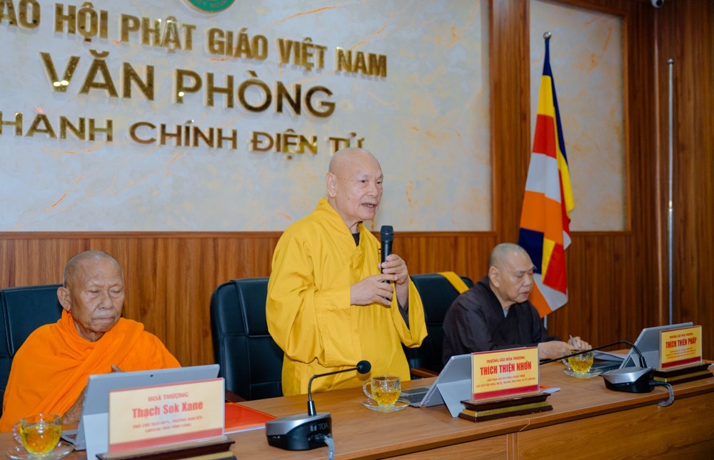 Sáng 22/4, tại Thiền viện Quảng Đức – Văn phòng 2 Trung ương Giáo hội (TP.HCM), Trưởng lão Hòa thượng Thích Thiện Nhơn, Phó Pháp chủ Hội đồng Chứng minh, Chủ tịch Hội đồng Trị sự, Trưởng Ban Chỉ đạo, đã chủ trì phiên họp nghe báo cáo công tác tổ chức Đại hội Đại biểu Phật giáo nhiệm kỳ 2026–2031 của hai tỉnh Vĩnh Long, An Giang.