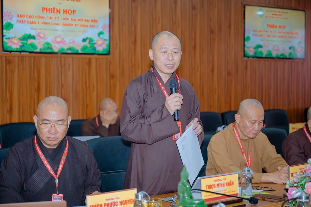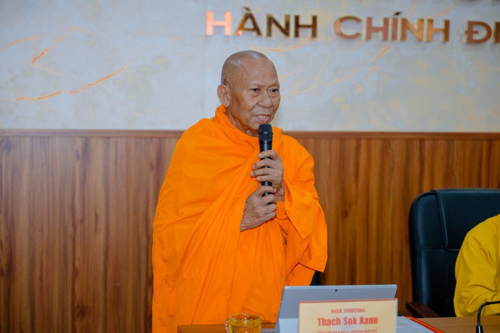 Làm việc với Ban Trị sự tỉnh Vĩnh Long có Hòa thượng Thạch Sock Xane, Phó Chủ tịch Hội đồng Trị sự, Trưởng BTS GHPGVN tỉnh; Hòa thượng Thích Trí Minh và Thượng tọa Thích Lệ Lạc, Thượng tọa Thích Trí Thọ - Đồng Phó Trưởng ban Thường trực BTS GHPGVN tỉnh; cùng chư Tôn đức Ban Tổ chức, Tiểu ban Nhân sự Đại hội.