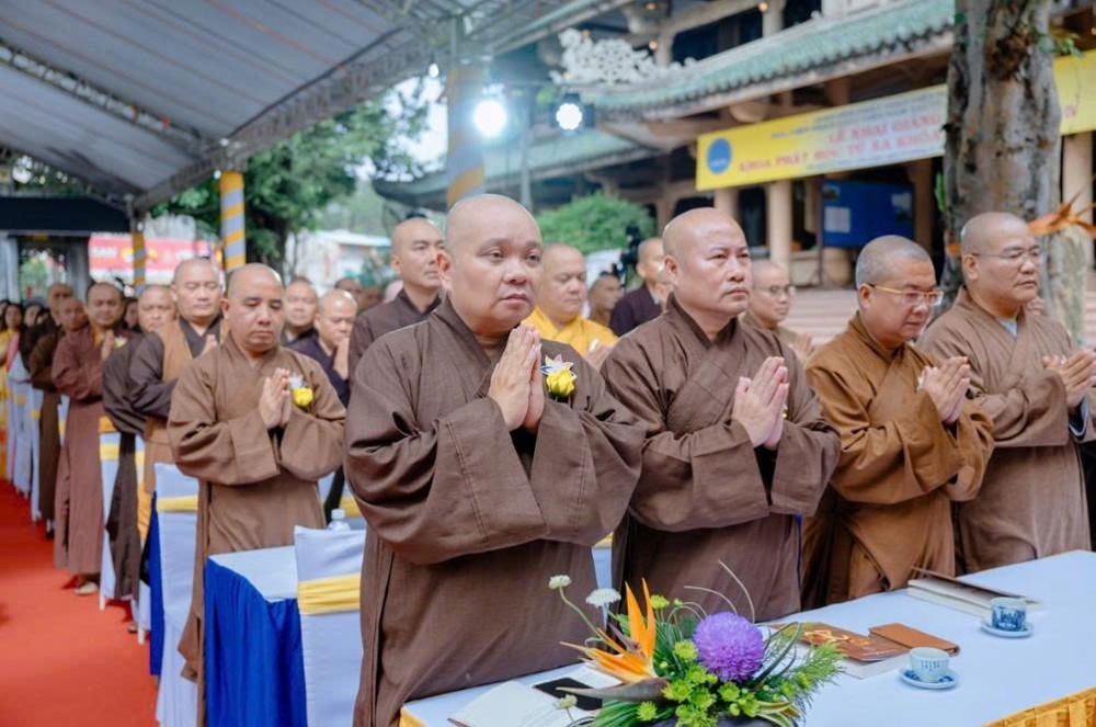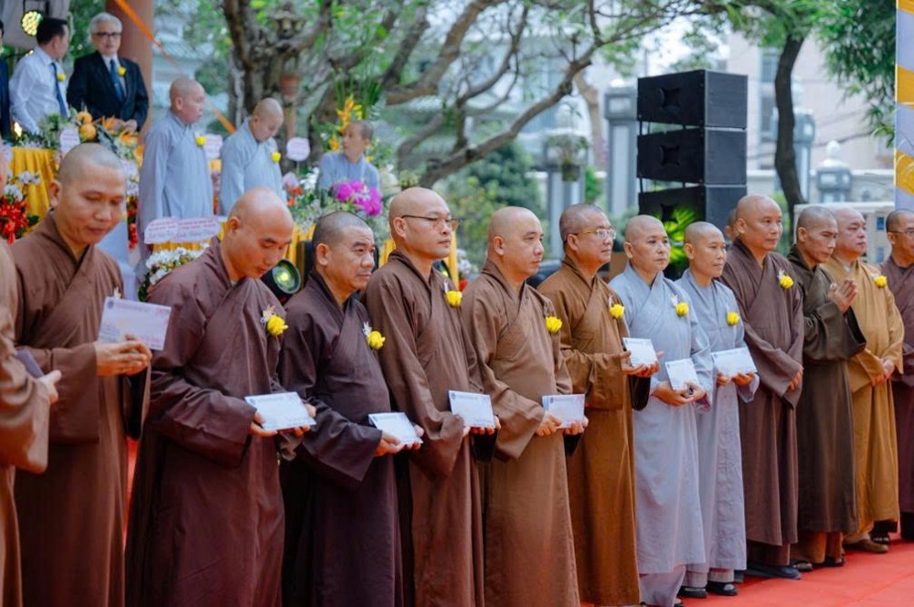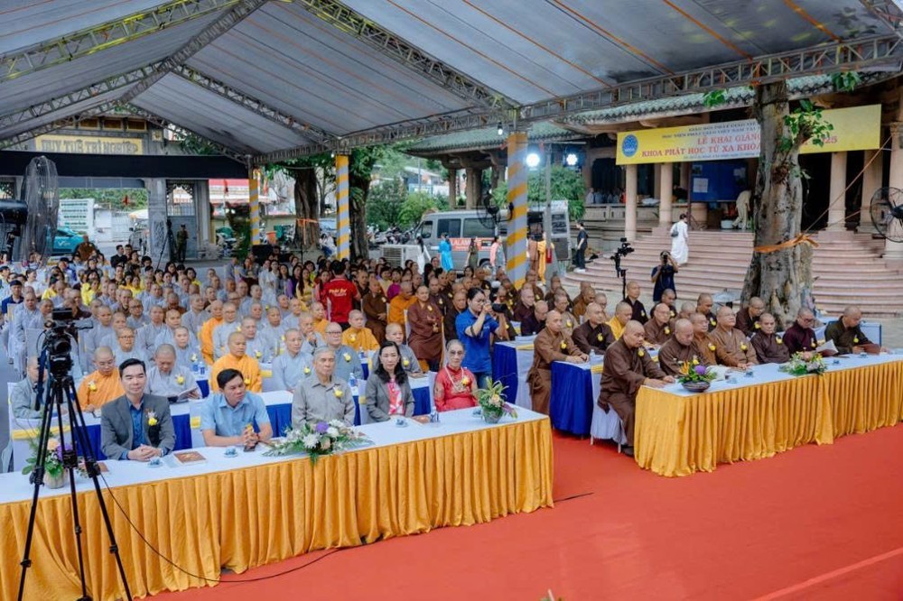 Tham dự buổi lễ còn có Hòa thượng Thích Giác Toàn – Phó Chủ tịch HĐTS, Viện trưởng Viện Nghiên cứu Phật học Việt Nam; chư Tôn đức Hội đồng Điều hành Học viện; chư vị Giáo thọ sư qua các thời kỳ, cùng đại diện các khóa cựu Tăng Ni sinh của Học viện.