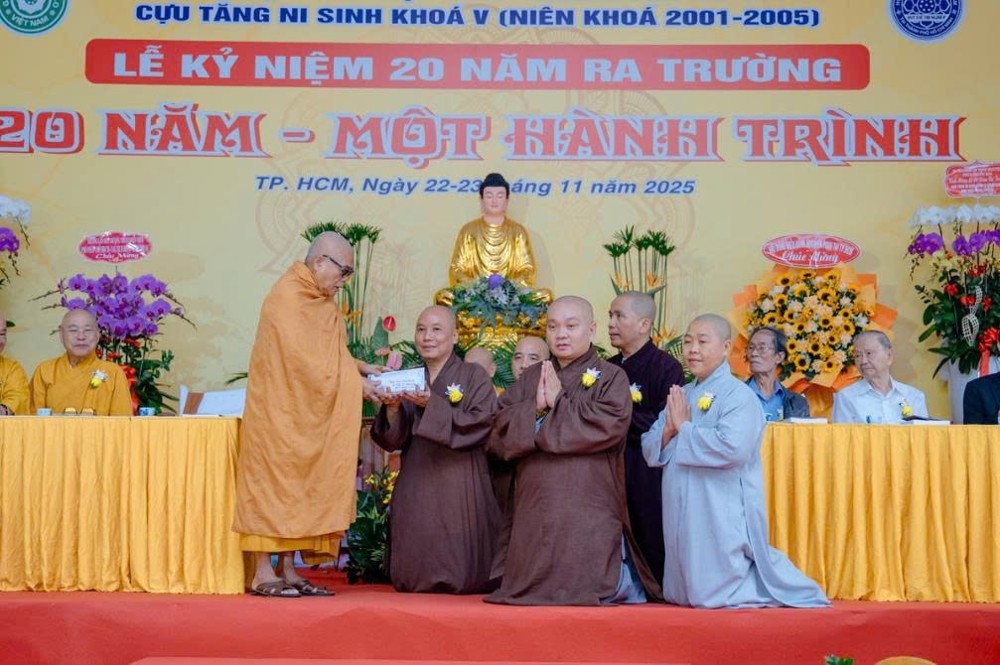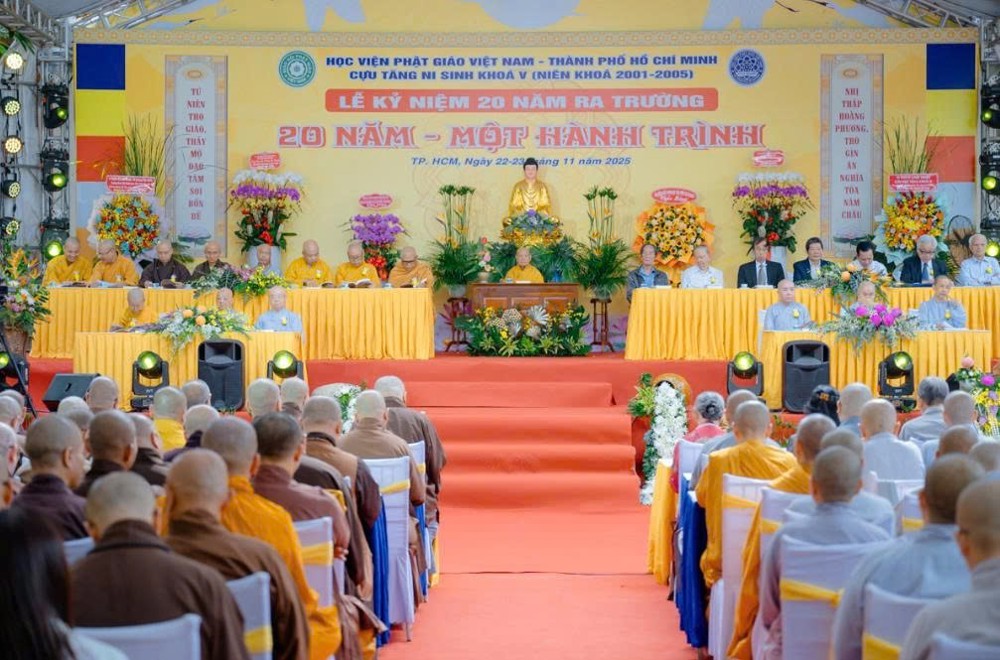 Sáng 23/11, tại Cơ sở I Học viện Phật giáo Việt Nam tại TP.HCM – Thiền viện Vạn Hạnh, cựu Tăng Ni sinh Khóa V đã long trọng tổ chức Lễ kỷ niệm 20 năm ngày ra trường, thể hiện lòng tri ân sâu sắc đến chư vị Giáo thọ sư đã dìu dắt, giáo dưỡng các thế hệ Tăng Ni trưởng thành trong trong môi trường giáo dục Phật giáo.