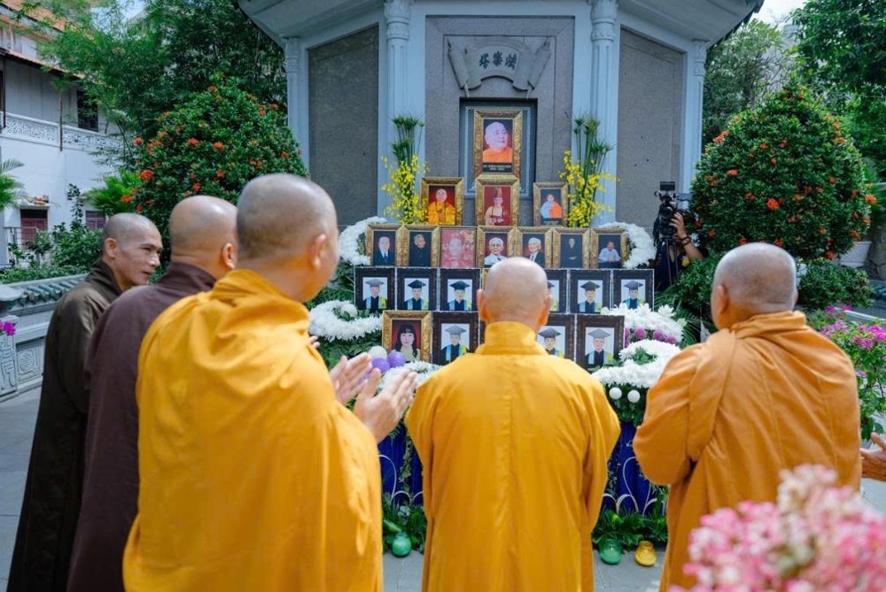 Trong ngày kỷ niệm đầy ý nghĩa này, Trưởng lão Hòa thượng Chủ tịch cùng chư Tôn đức đã thành kính dâng hương tưởng niệm tại Bảo tháp Trưởng lão Hòa thượng Thích Minh Châu – vị Viện trưởng sáng lập Học viện, bậc mô phạm của nhiều thế hệ Tăng Ni, và là người đặt nền móng đào tạo Tăng Ni tài đức để xây dựng và phát triển GHPGVN.