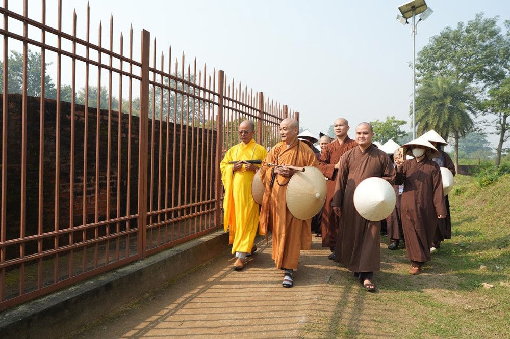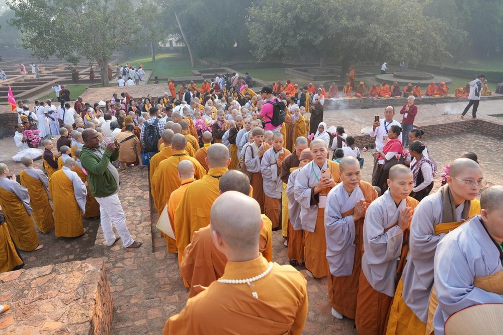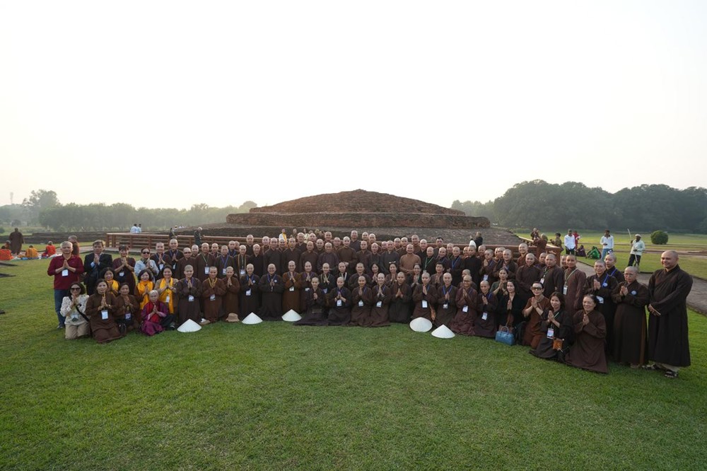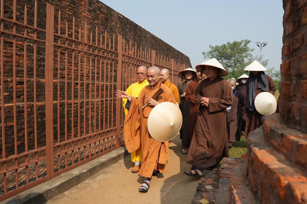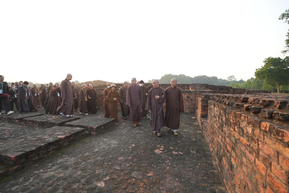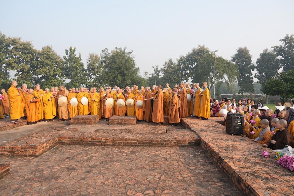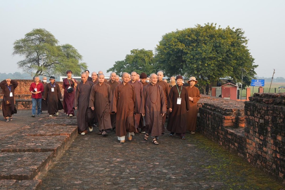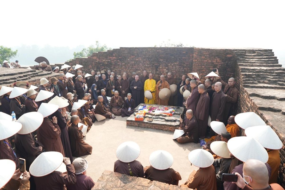 Tại khu thánh địa, đại chúng đã nghe Thượng tọa Thích Tiến Đạt thuyết bài pháp ngắn nói về ý nghĩa đặc thù của mô hình Tịnh xá trong Phật giáo nguyên thủy, về vai trò của Jetavana như cội nguồn của nền giáo dục Phật giáo sơ kỳ. Sau đó, đoàn đã trang nghiêm thành kính tụng thời Kinh A Di Đà, nhiễu Phật ba vòng quanh cây Bồ Đề, đồng thời đỉnh lễ trước những di tích còn hiện hữu: cây Bồ Đề do Tôn giả A Nan trồng, nền hương thất của Đức Thế Tôn, cùng các tháp thờ tưởng niệm các bậc Thánh Tăng như Xá Lợi Phất, Mục Kiền Liên và La Hầu La. Những dấu tích ấy là từng lớp lịch sử chân thật, đưa Tăng Ni sinh trở về với hơi thở sống động của xã hội Ấn Độ cổ đại, nơi Giáo pháp không chỉ được thuyết giảng mà còn được thể nghiệm và chứng ngộ.