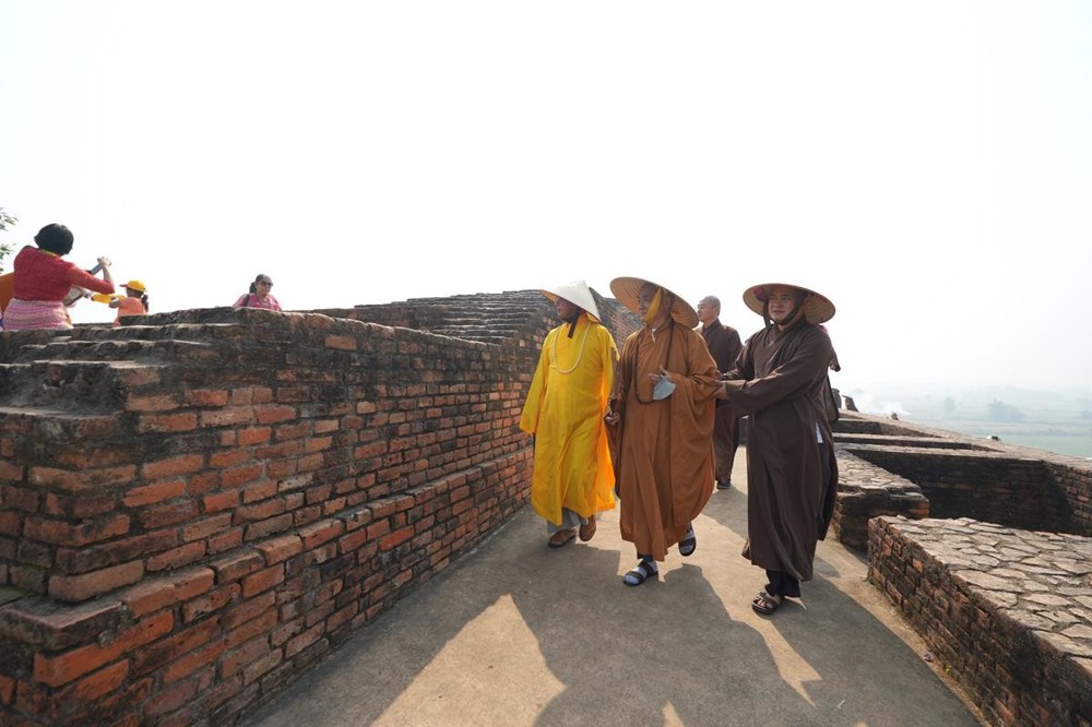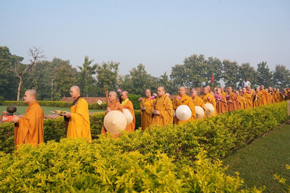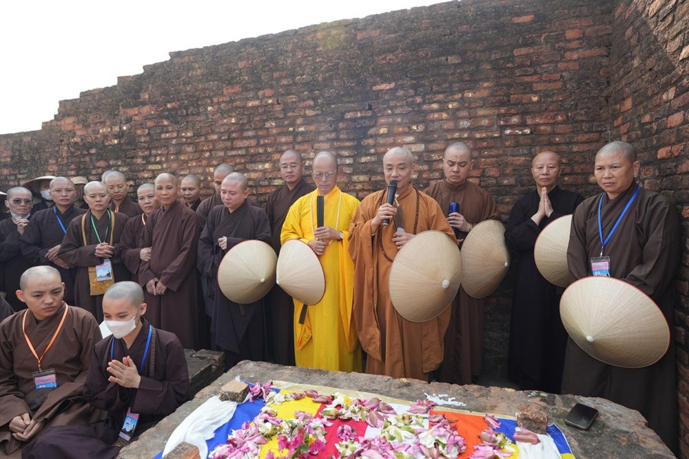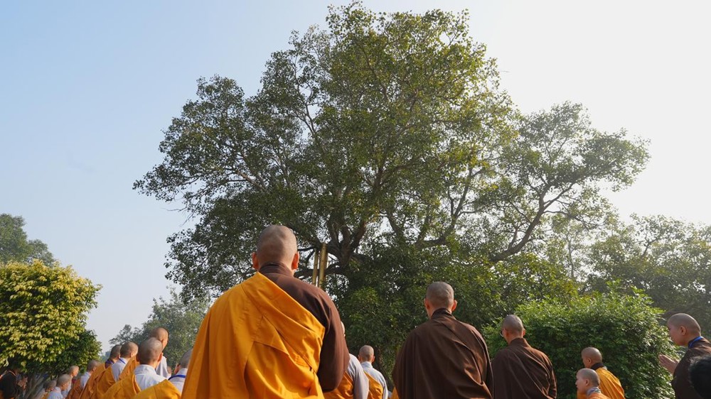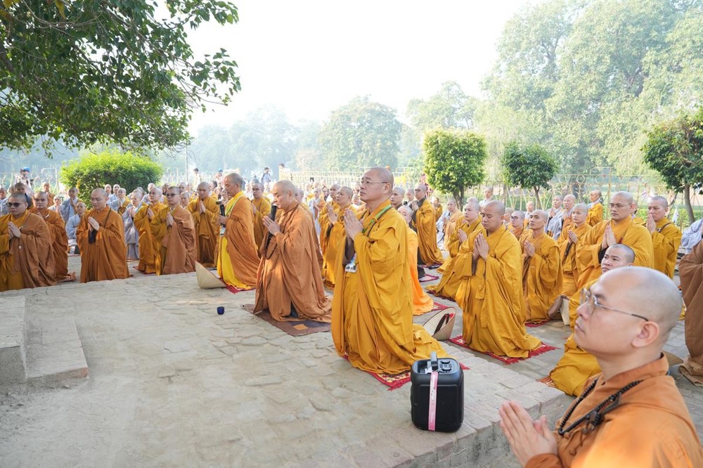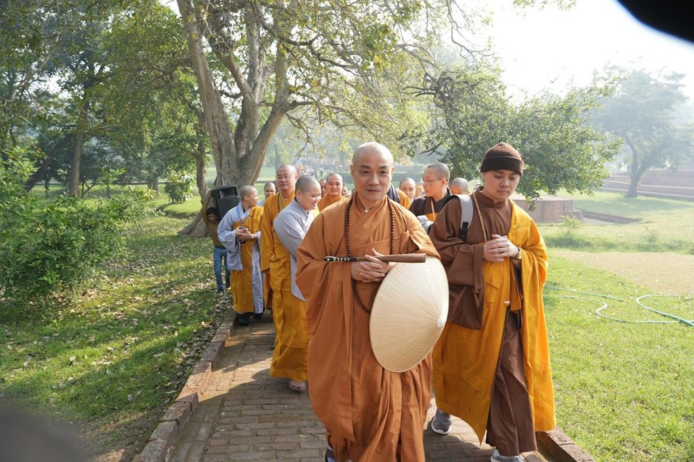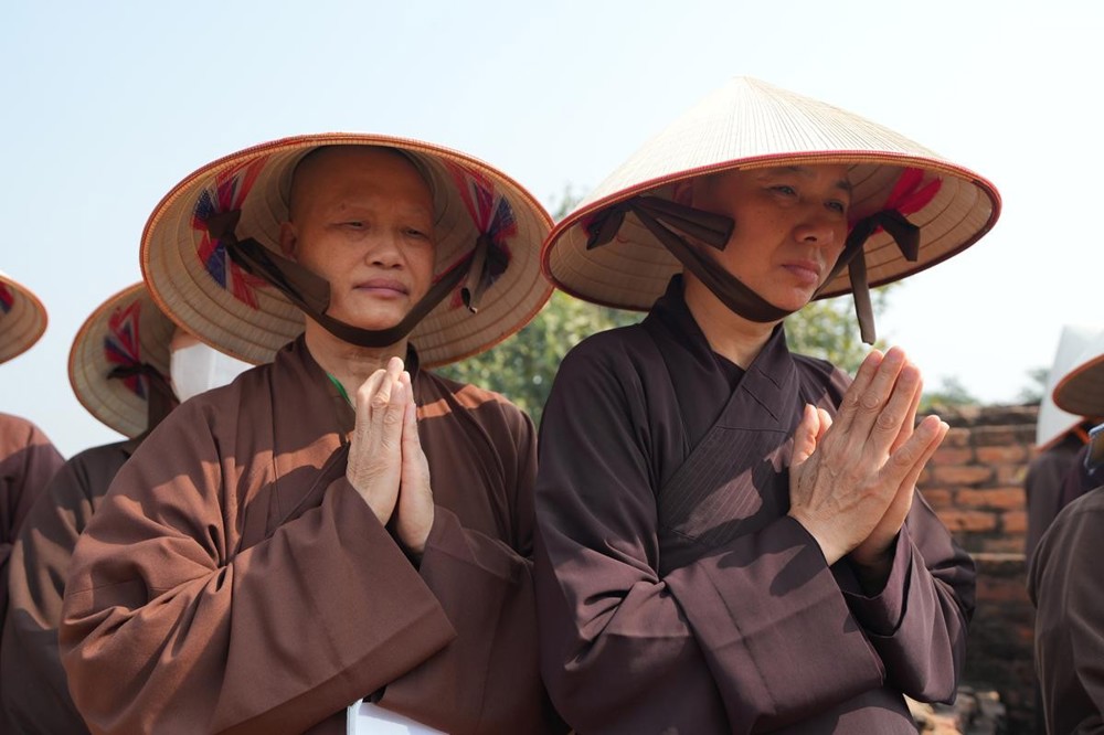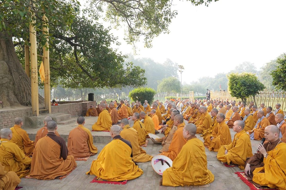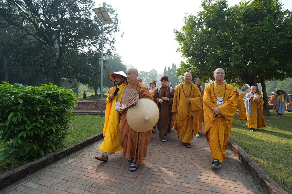Tại khu thánh địa, đại chúng đã nghe Thượng tọa Thích Tiến Đạt thuyết bài pháp ngắn nói về ý nghĩa đặc thù của mô hình Tịnh xá trong Phật giáo nguyên thủy, về vai trò của Jetavana như cội nguồn của nền giáo dục Phật giáo sơ kỳ. Sau đó, đoàn đã trang nghiêm thành kính tụng thời Kinh A Di Đà, nhiễu Phật ba vòng quanh cây Bồ Đề, đồng thời đỉnh lễ trước những di tích còn hiện hữu: cây Bồ Đề do Tôn giả A Nan trồng, nền hương thất của Đức Thế Tôn, cùng các tháp thờ tưởng niệm các bậc Thánh Tăng như Xá Lợi Phất, Mục Kiền Liên và La Hầu La. Những dấu tích ấy là từng lớp lịch sử chân thật, đưa Tăng Ni sinh trở về với hơi thở sống động của xã hội Ấn Độ cổ đại, nơi Giáo pháp không chỉ được thuyết giảng mà còn được thể nghiệm và chứng ngộ.
