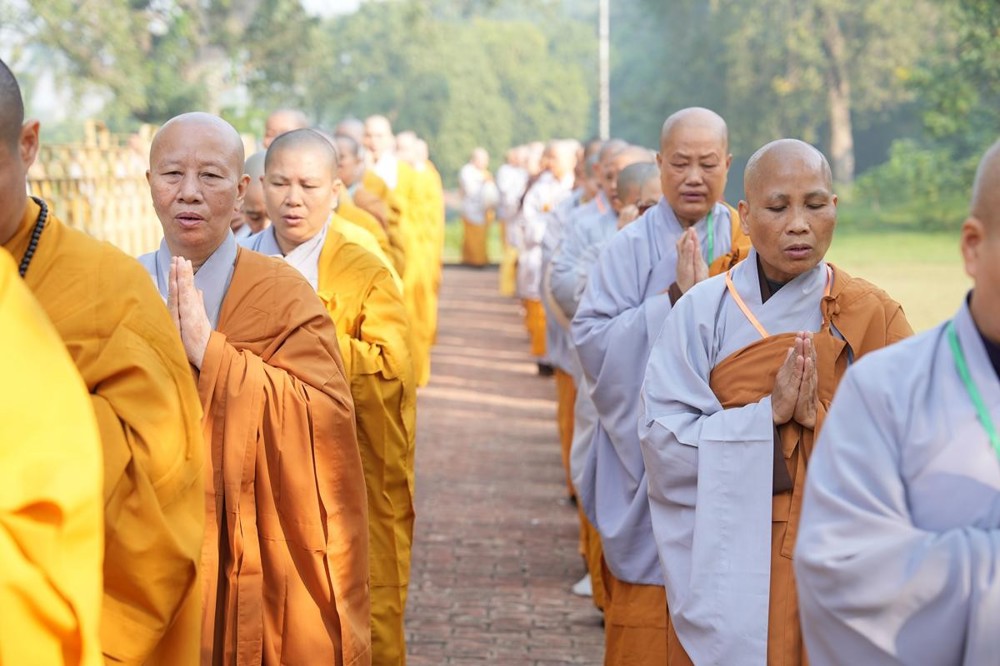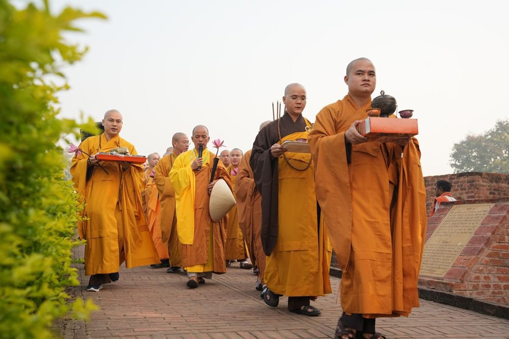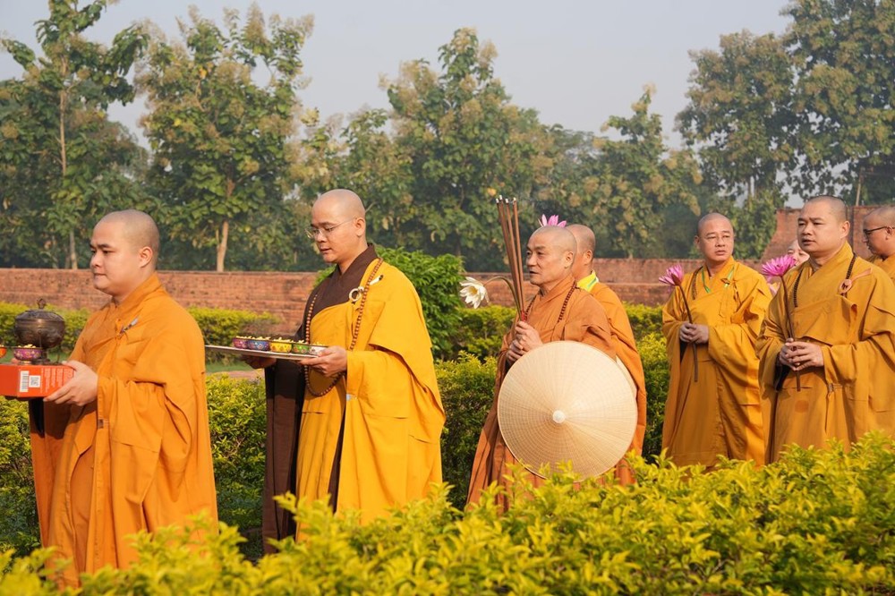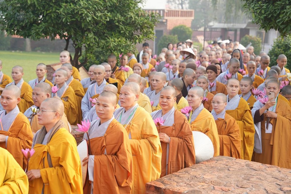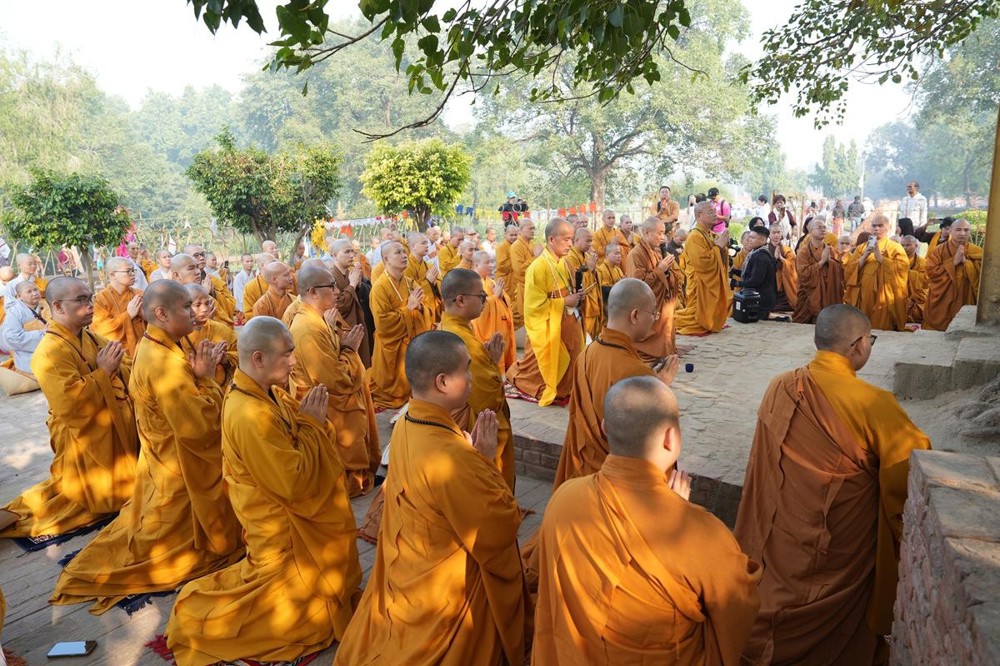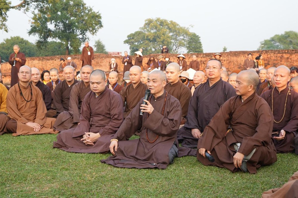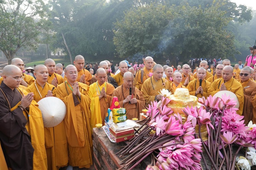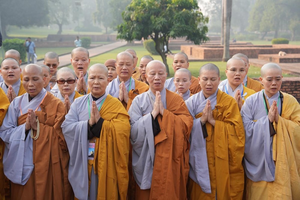 Tại khu thánh địa, đại chúng đã nghe Thượng tọa Thích Tiến Đạt thuyết bài pháp ngắn nói về ý nghĩa đặc thù của mô hình Tịnh xá trong Phật giáo nguyên thủy, về vai trò của Jetavana như cội nguồn của nền giáo dục Phật giáo sơ kỳ. Sau đó, đoàn đã trang nghiêm thành kính tụng thời Kinh A Di Đà, nhiễu Phật ba vòng quanh cây Bồ Đề, đồng thời đỉnh lễ trước những di tích còn hiện hữu: cây Bồ Đề do Tôn giả A Nan trồng, nền hương thất của Đức Thế Tôn, cùng các tháp thờ tưởng niệm các bậc Thánh Tăng như Xá Lợi Phất, Mục Kiền Liên và La Hầu La. Những dấu tích ấy là từng lớp lịch sử chân thật, đưa Tăng Ni sinh trở về với hơi thở sống động của xã hội Ấn Độ cổ đại, nơi Giáo pháp không chỉ được thuyết giảng mà còn được thể nghiệm và chứng ngộ.