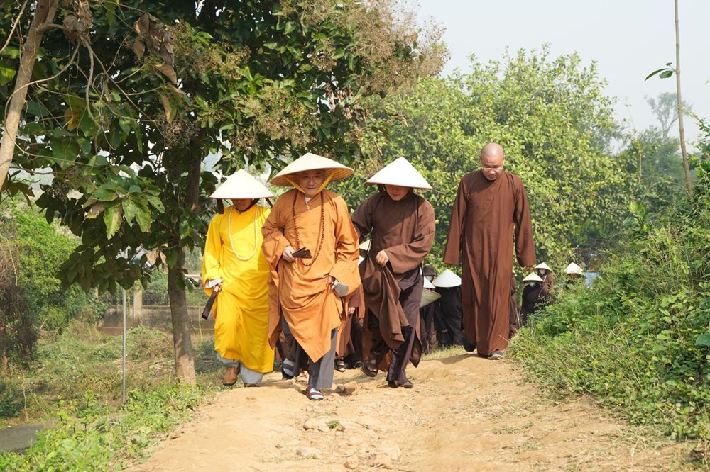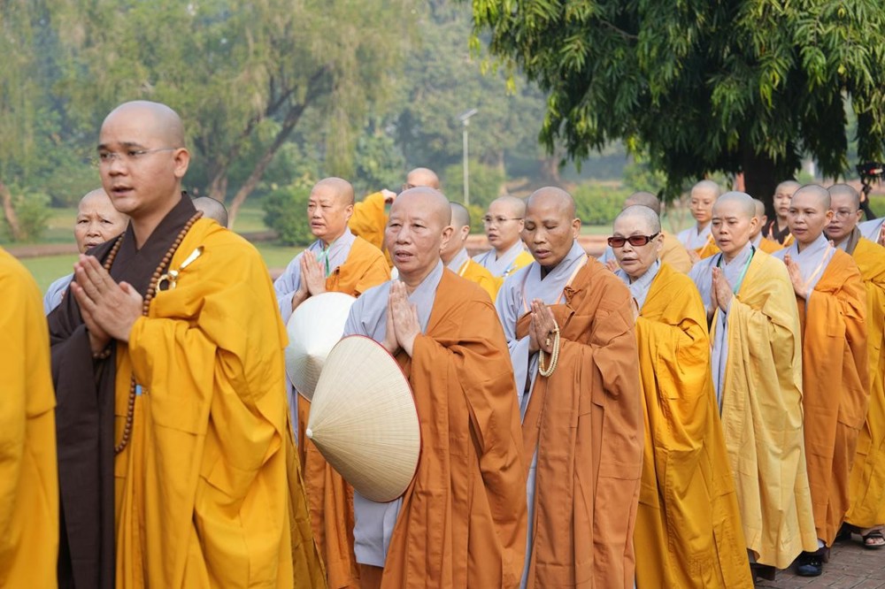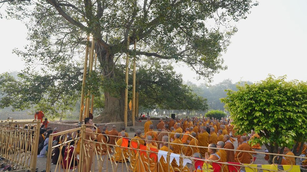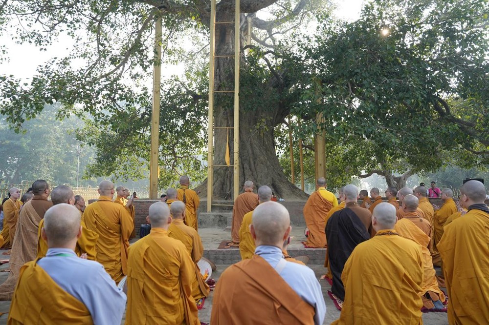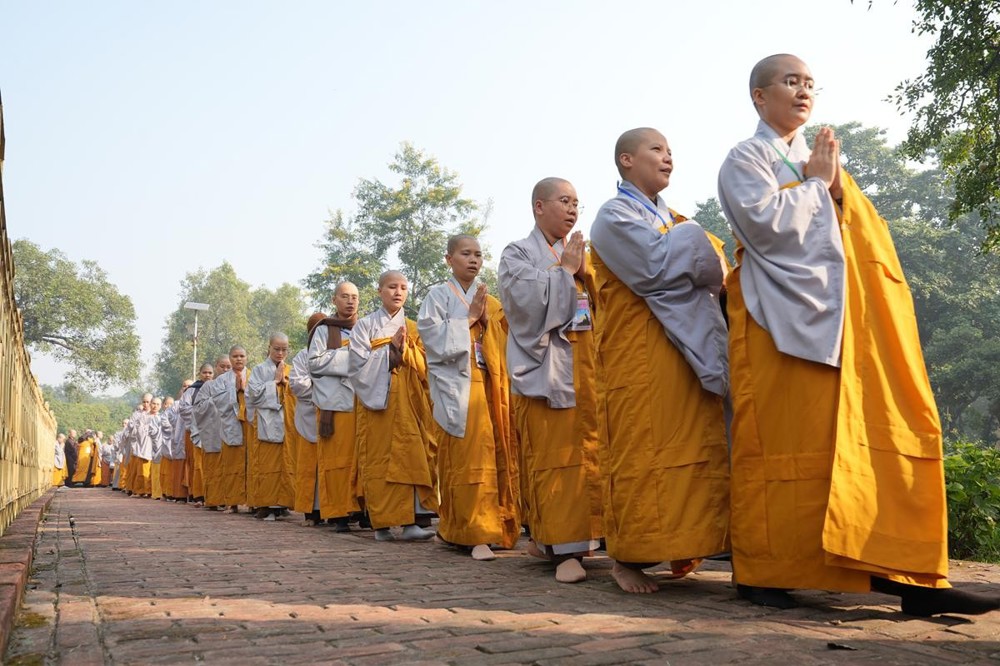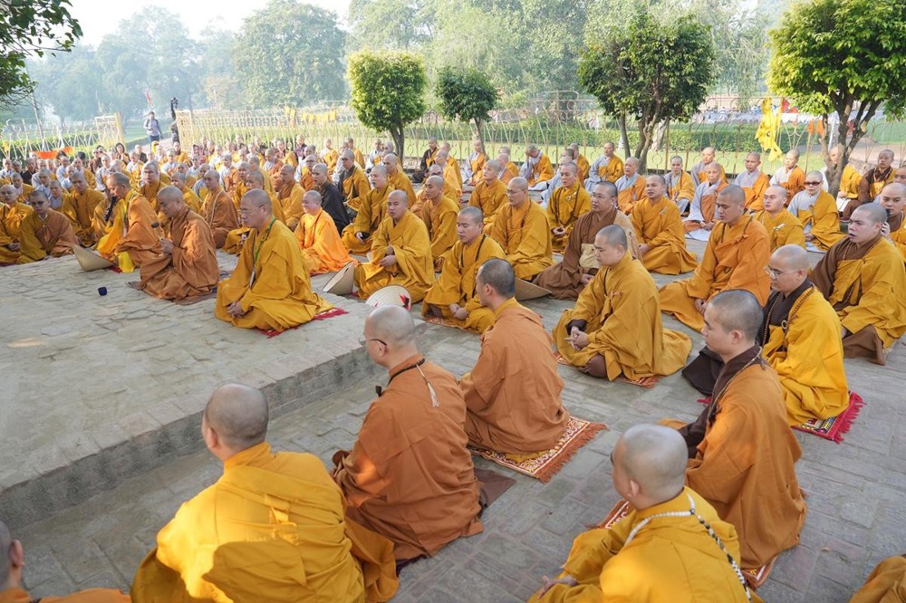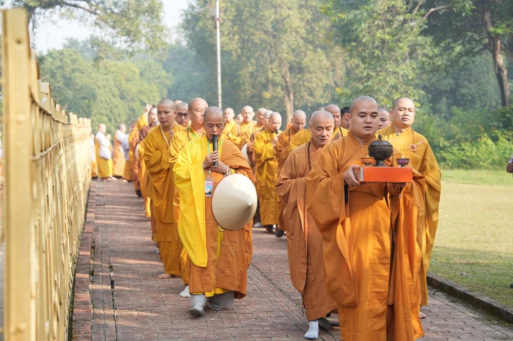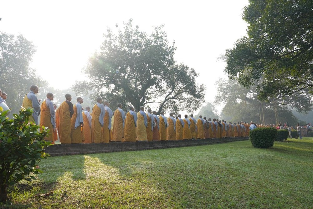 Tại khu thánh địa, đại chúng đã nghe Thượng tọa Thích Tiến Đạt thuyết bài pháp ngắn nói về ý nghĩa đặc thù của mô hình Tịnh xá trong Phật giáo nguyên thủy, về vai trò của Jetavana như cội nguồn của nền giáo dục Phật giáo sơ kỳ. Sau đó, đoàn đã trang nghiêm thành kính tụng thời Kinh A Di Đà, nhiễu Phật ba vòng quanh cây Bồ Đề, đồng thời đỉnh lễ trước những di tích còn hiện hữu: cây Bồ Đề do Tôn giả A Nan trồng, nền hương thất của Đức Thế Tôn, cùng các tháp thờ tưởng niệm các bậc Thánh Tăng như Xá Lợi Phất, Mục Kiền Liên và La Hầu La. Những dấu tích ấy là từng lớp lịch sử chân thật, đưa Tăng Ni sinh trở về với hơi thở sống động của xã hội Ấn Độ cổ đại, nơi Giáo pháp không chỉ được thuyết giảng mà còn được thể nghiệm và chứng ngộ.
