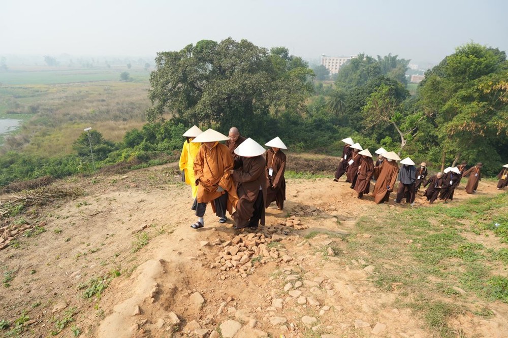 Kết thúc buổi sáng, đoàn cũng đã đến Thánh tích Sankassa (Sankissa) – ngọn núi nơi Đức Phật khởi thân lên cung trời Đao Lợi để thuyết pháp báo hiếu cho Mẫu thân là Hoàng hậu Ma Gia phu nhân. Đây là một trong tám Thánh tích lớn của Phật giáo, được các nhà khảo cổ ví như “sân bay đầu tiên” trong truyền thuyết Phật giáo – nơi biểu trưng cho hành trình vượt qua các cõi giới bằng trí tuệ và tâm thức giác ngộ.