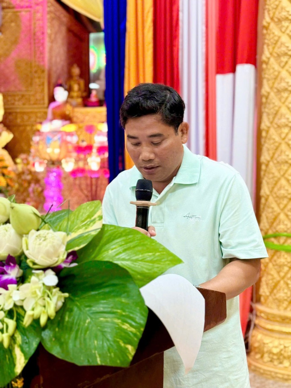 Thay mặt Ban Giám hiệu, Hòa thượng Danh Đổng, Hiệu trưởng Trường Trung cấp Phật học Nam tông Khmer Kiên Giang, đã có bài phát biểu quan trọng trước toàn thể đại biểu và tăng sinh. Hòa thượng nhấn mạnh vai trò của giáo dục trong sự phát triển bền vững của Phật giáo Nam tông Khmer, đồng thời biểu dương tinh thần nỗ lực của đội ngũ giảng sư và tăng sinh trong năm học vừa qua.