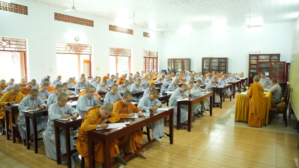 Ngay sau lễ khai mạc, 170 thí sinh đã chính thức bước vào kỳ thi Tuyển sinh với 2 môn thi: Phật Pháp Căn Bản (90 phút) và Việt Văn (90 phút).