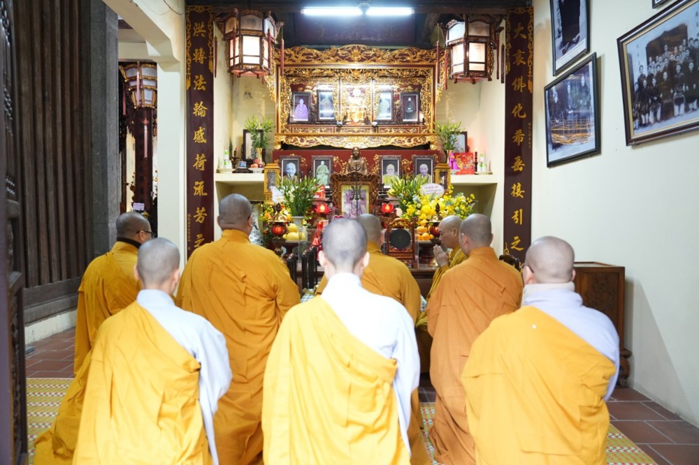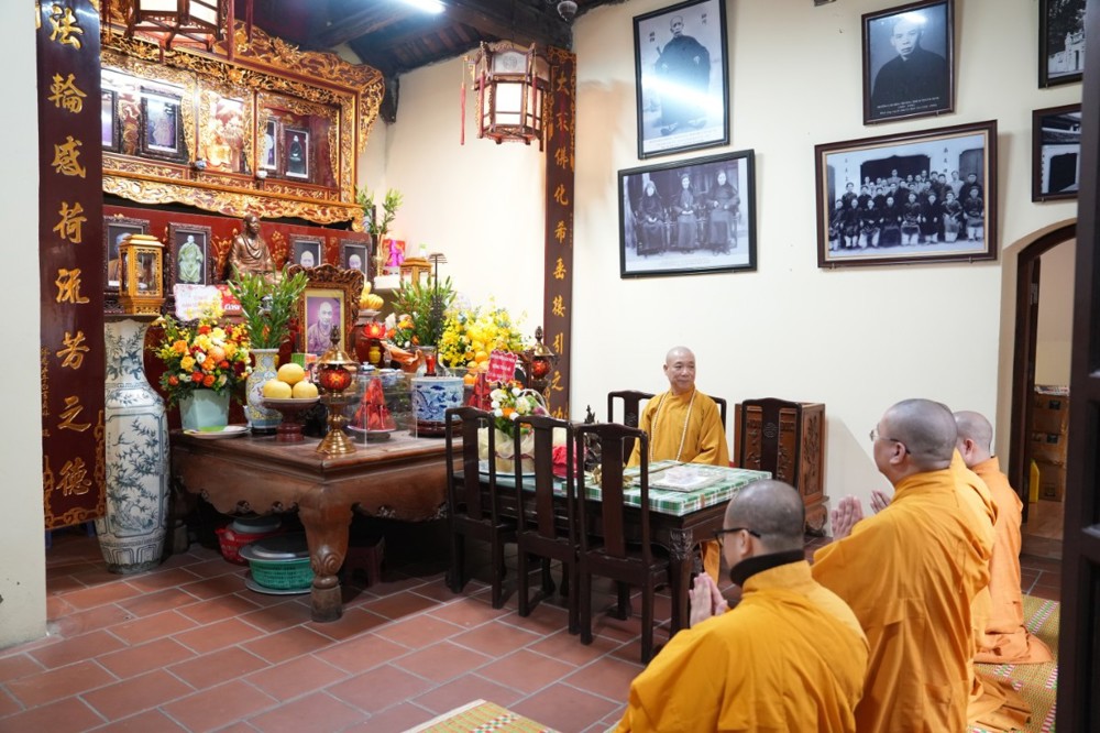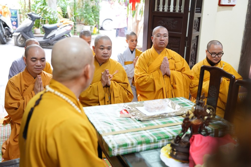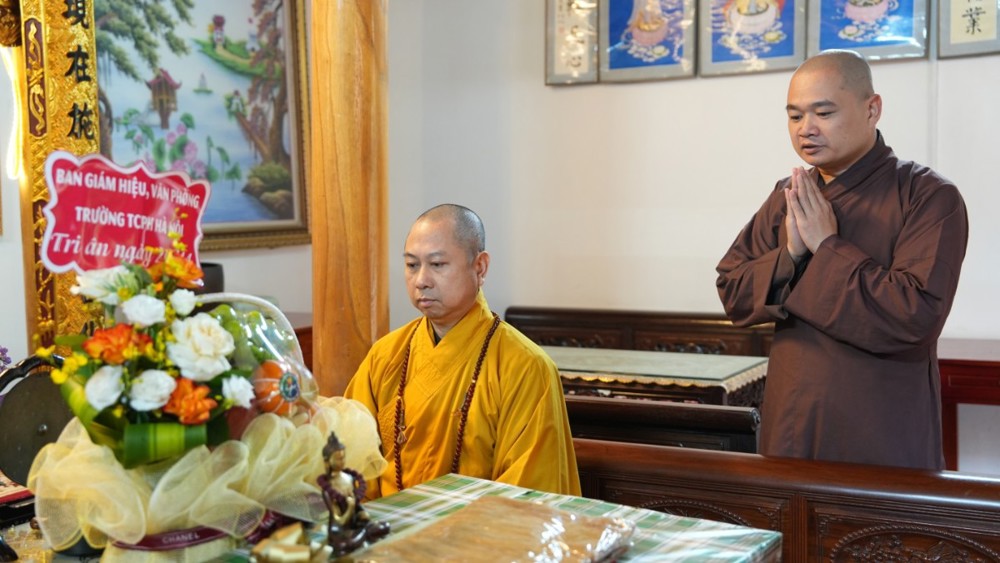 Rời chùa Lý Triều Quốc Sư, trong buổi sáng cùng ngày, phái đoàn đã đến thăm Thượng toạ Thích Minh Tín – Uỷ viên HĐTS TWGHPG Việt Nam, Phó Trưởng ban Trị sự GHPGVN TP. Hà Nội, Hiệu trưởng Trường TCPH Hà Nội. Đại đức Thích Thái Minh thay mặt đoàn dâng lời chúc mừng nhân ngày Nhà giáo Việt Nam 20/11, đồng thời bày tỏ lòng tri ân đối với sự tận tụy của Thượng tọa trong công tác quản lý, giảng dạy và định hướng cho Tăng Ni sinh. Thượng toạ Thích Minh Tín đã gửi lời chúc lành đến toàn thể Tăng Ni sinh, khuyến tấn đại chúng luôn giữ vững chí nguyện tu học, tinh tấn rèn luyện đạo hạnh và nâng cao tri kiến Phật học để trở thành những hành giả trang nghiêm trong tương lai.
