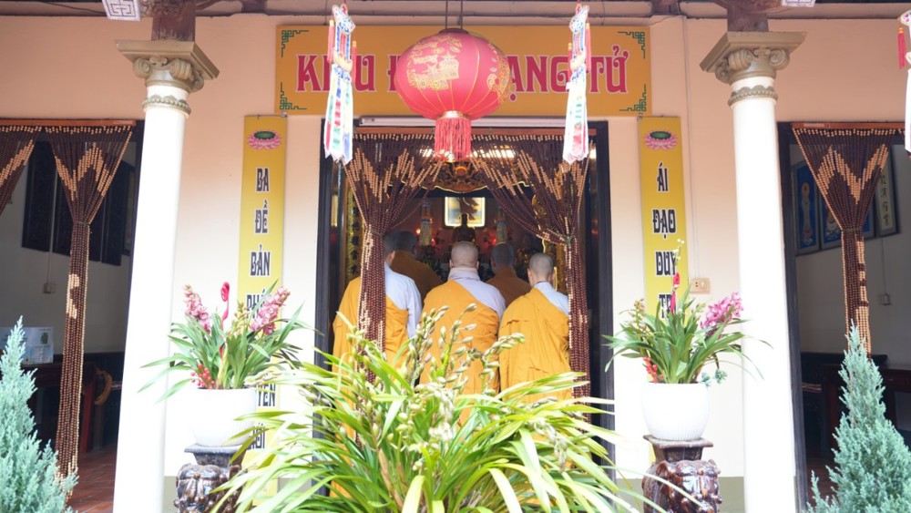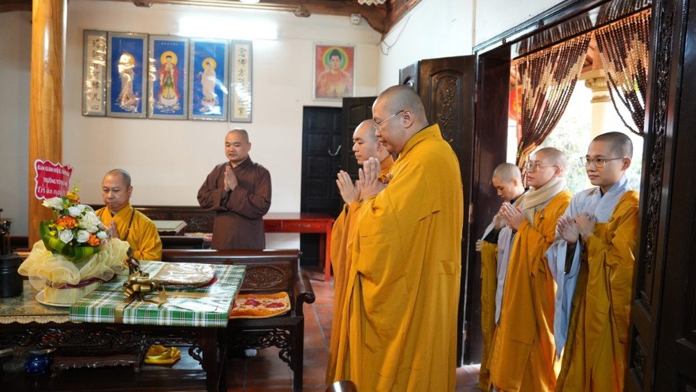 Tiếp đó, phái đoàn đã đến chùa Đại Từ Ân để thăm Thượng toạ Thích Tiến Đạt – Phó viện trưởng Phân viện nghiên cứu Phật học Việt Nam, Cố vấn Ban Giám hiệu, Viện chủ chùa Đại Từ Ân. Tại đây, đoàn kính dâng lẵng hoa và lời tri ân sâu sắc đến Thượng tọa nhân ngày 20/11. Ban lời đạo từ, Thượng tọa Thích Tiến Đạt tán thán tinh thần hiếu học của Tăng Ni sinh các khóa lớp, đặc biệt, chuyến hành hương và học tập thực tế tại miền Đất Phật – Ấn Độ vừa qua sẽ là tư lương quý báu, giúp Tăng Ni sinh vun bồi niềm tin Tam Bảo, mở rộng tri kiến và hun đúc chí nguyện hoằng truyền chính pháp trên con đường tu học sau này.