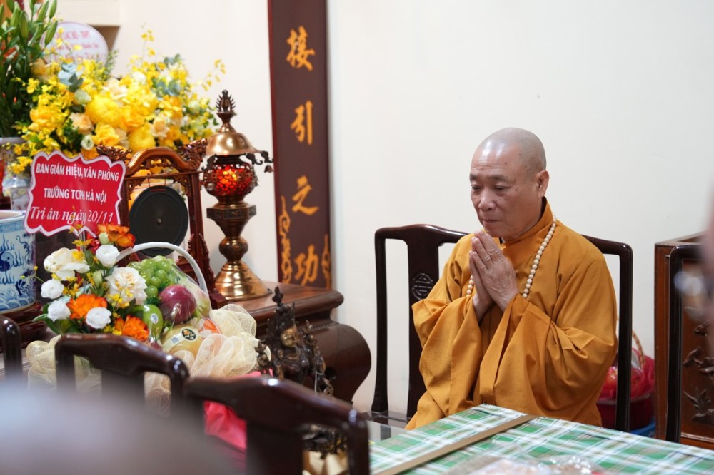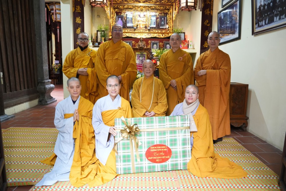 Sáng ngày 19/11 (nhằm ngày 30/09 năm Ất Tỵ), phái đoàn Trường Trung cấp Phật học TP Hà Nội do Đại đức Thích Thái Minh – Chánh Văn phòng nhà trường làm trưởng đoàn, cùng Đại đức Thích Giác Nguyên – cán bộ Văn phòng và đại diện Tăng, Ni sinh ba khối lớp khóa IX đã đến thăm và vấn an chư Tôn đức BTS GHPGVN TP Hà Nội, đồng thời tri ân Ban Giám hiệu nhân dịp kỷ niệm Ngày Nhà giáo Việt Nam 20/11.