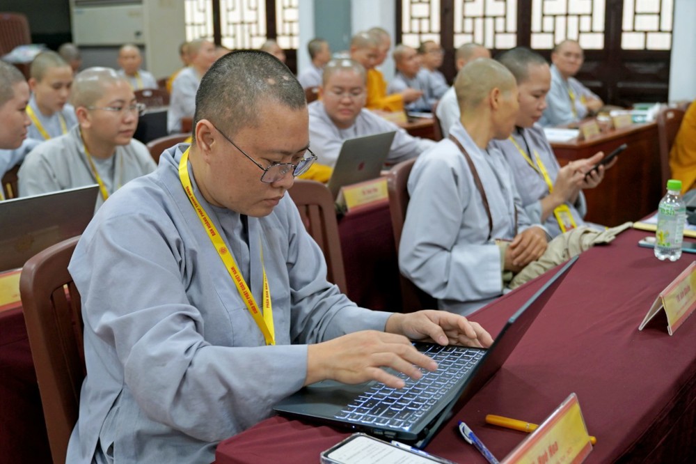 Tại đây, Thượng tọa cũng giới thiệu ứng dụng VBSeID – một ứng dụng quản lý tương tự VNeID dành cho tu sĩ Phật giáo với nhiều tiện ích thiết thực. Đồng thời, Thượng tọa hướng dẫn thực hiện số hóa văn bản, nộp hồ sơ trực tuyến và triển khai nhiều nội dung ứng dụng công nghệ số vào công tác hành chính Giáo hội.
