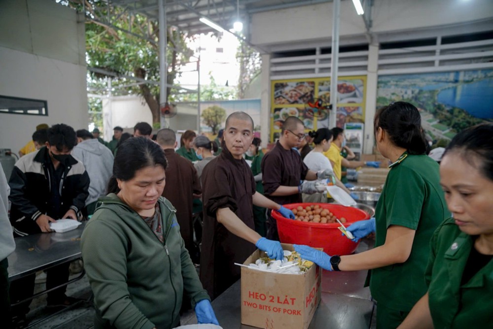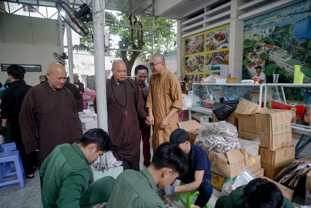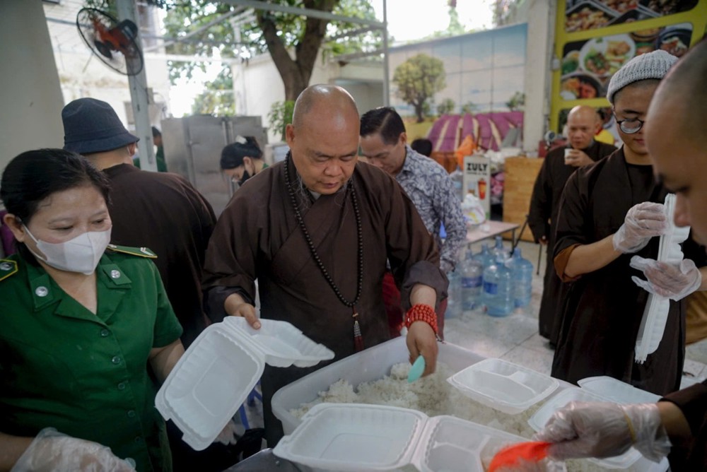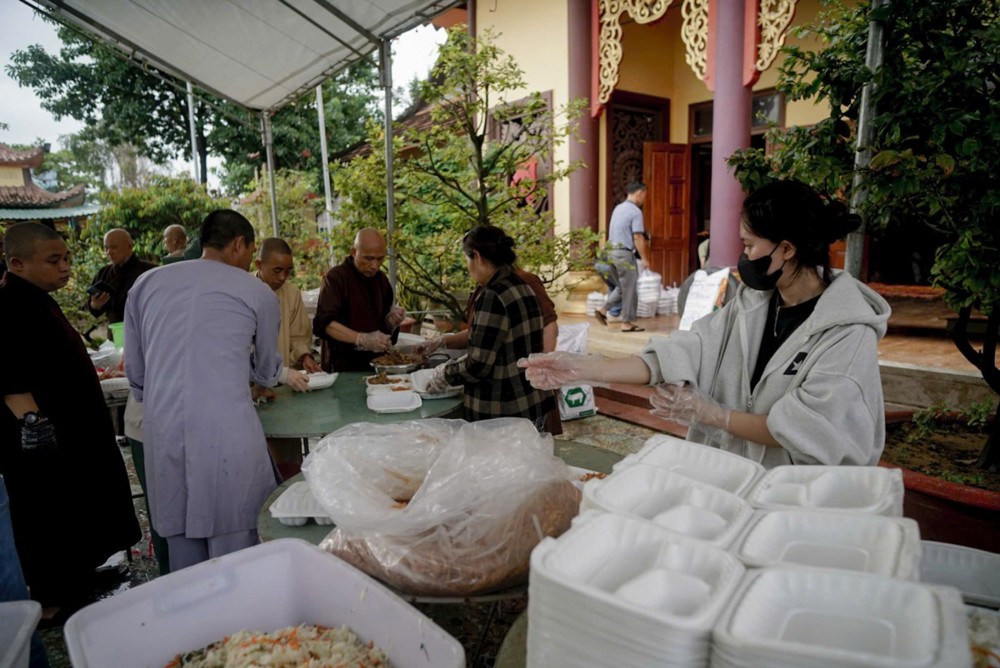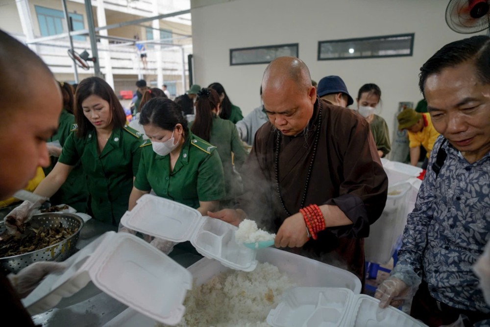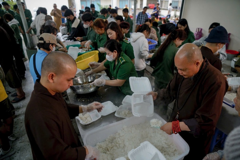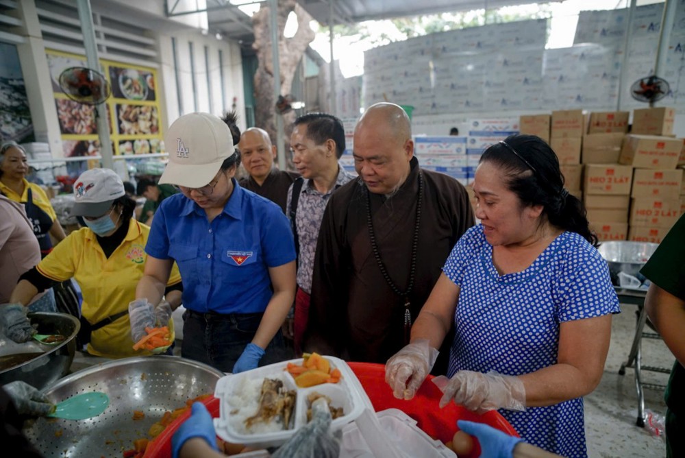 Dưới sự chỉ đạo của Trung ương GHPGVN, TT. Thích Thanh Phong đã phân công Ban Từ thiện xã hội GHPGVN TP.HCM, Tổ đình Vĩnh Nghiêm phối hợp cùng Hội Từ thiện chùa Tường Nguyên, do TT. Thích Minh Phú – người có nhiều kinh nghiệm trong công tác bếp ăn dã chiến như thời đại dịch Covid-19 hoặc các sự kiện lớn như Đại lễ Vesak 2025, cùng Tăng Ni Trường TCPH Khánh Hòa, Phật tử TP.HCM, Nhóm từ thiện Chia sẻ Sharing của bà Mai Thị Hạnh (Phu nhân nguyên Chủ tịch nước Trương Tấn Sang) hỗ trợ cùng các tình nguyện viên… tất cả cùng chung tay để mang đến những phần cơm chất lượng nhất gửi đến bà con đang chịu ảnh hưởng nặng nề của bão lũ.