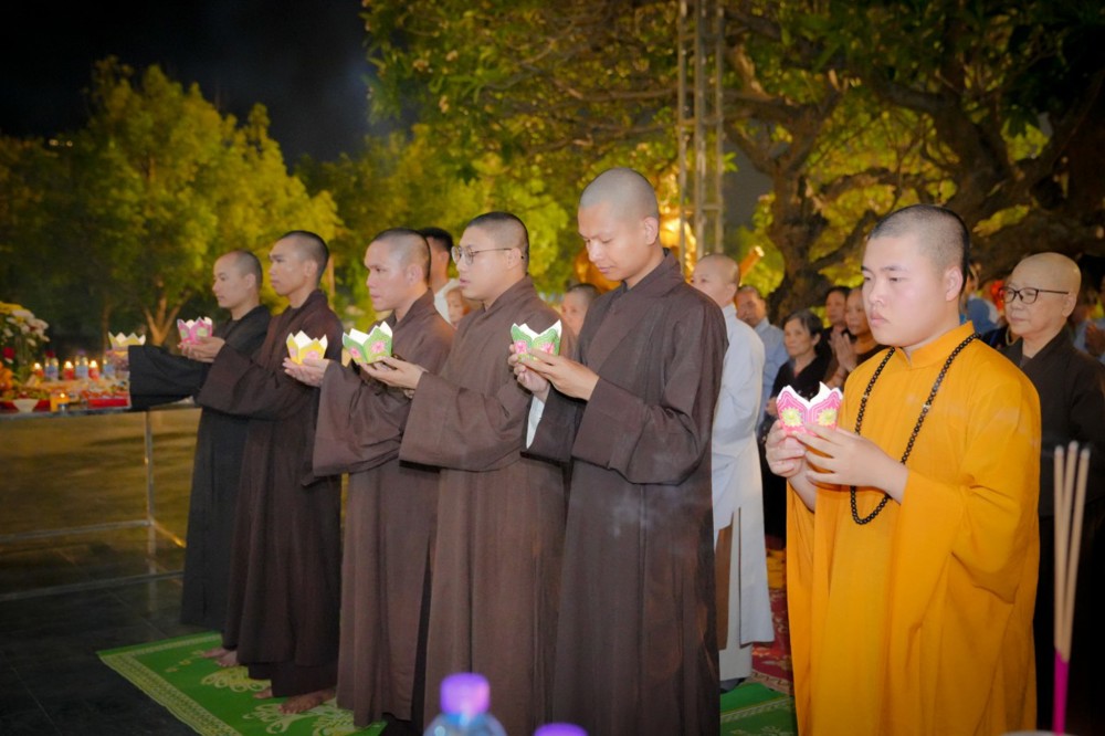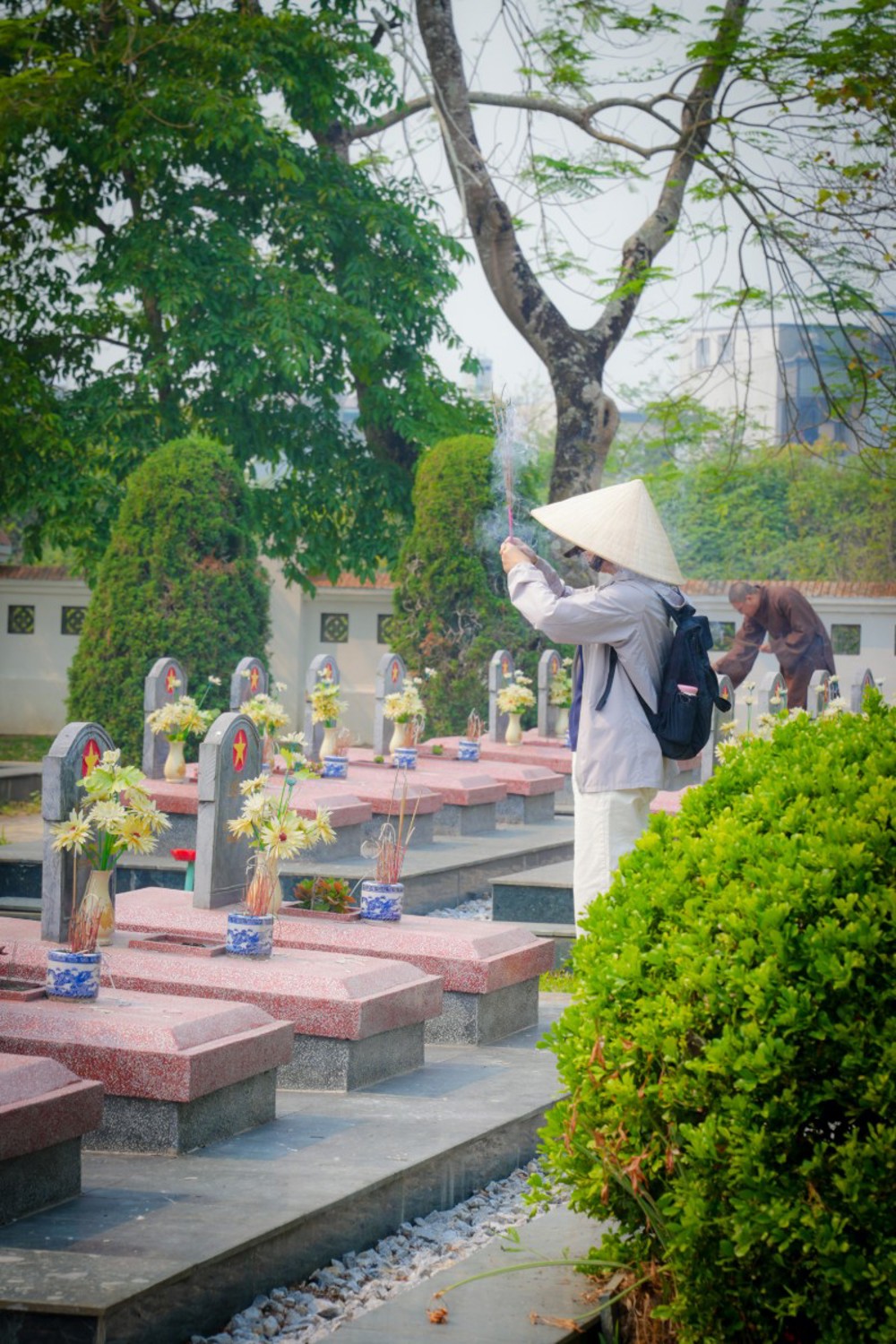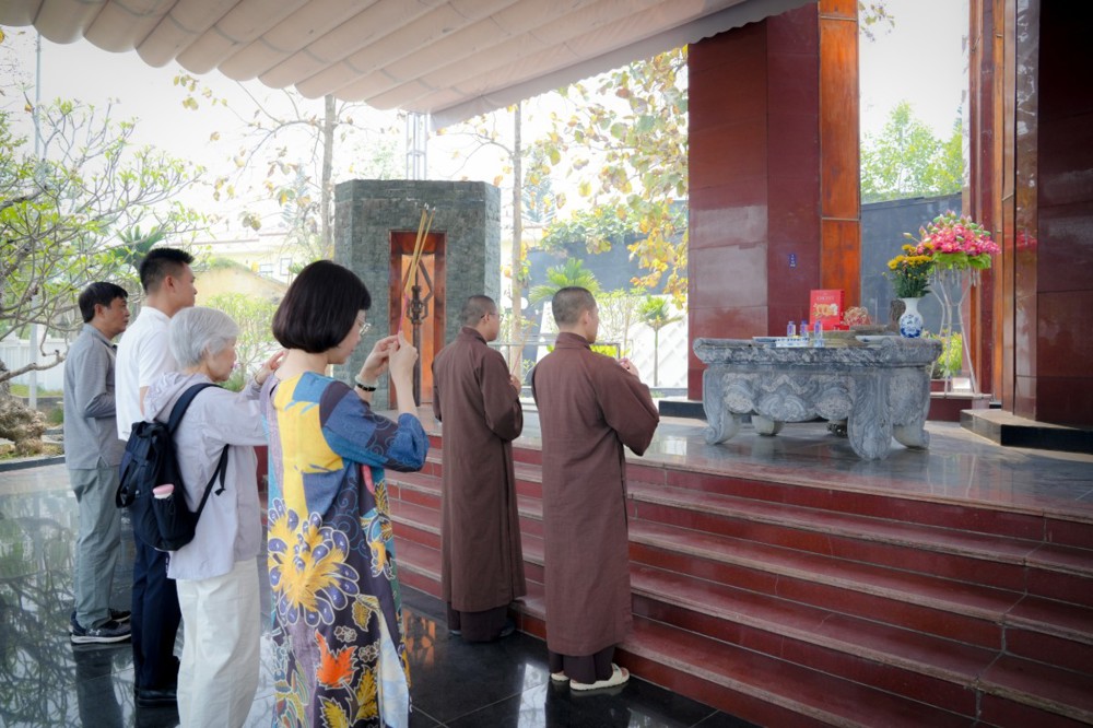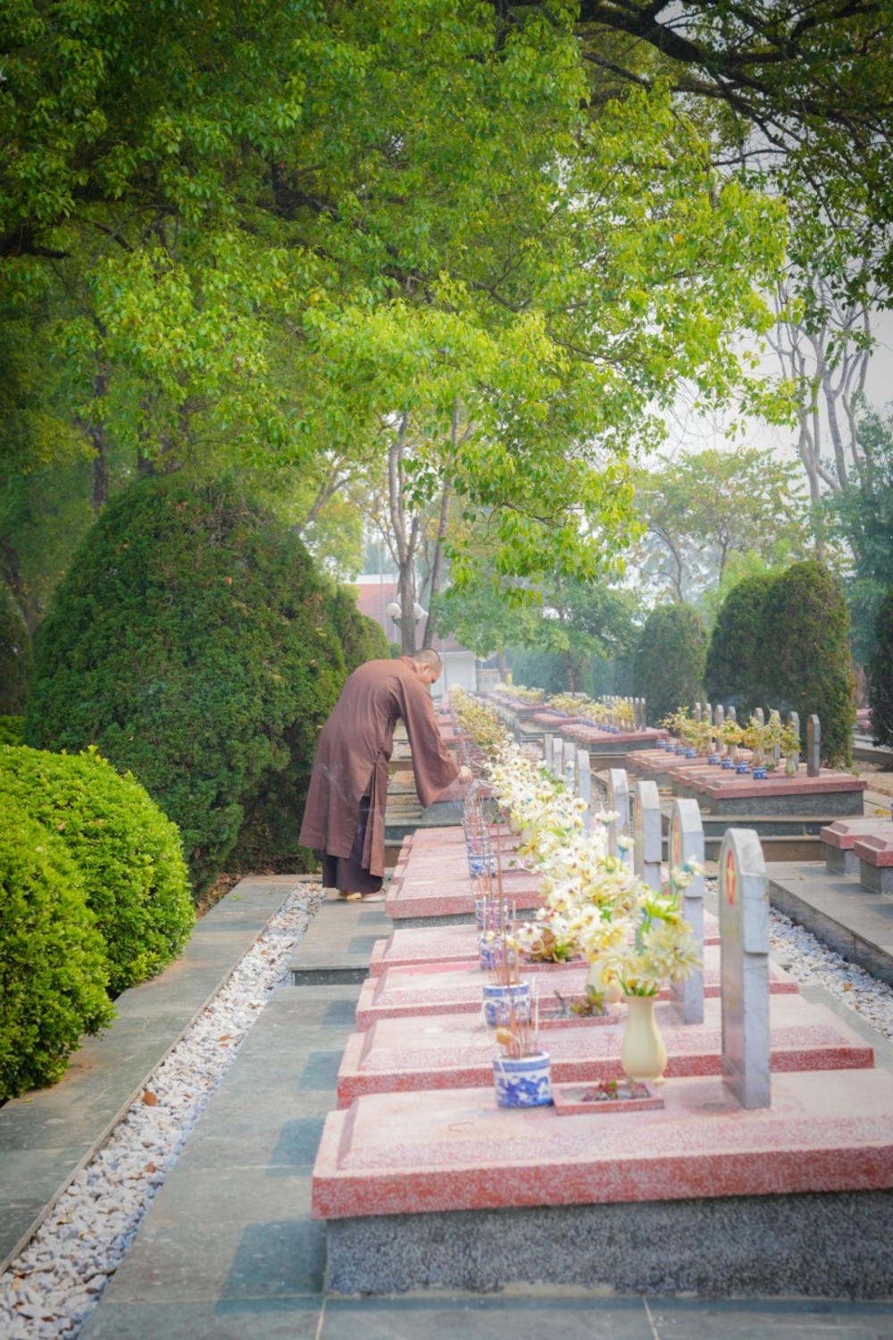 Tiếp đó, đoàn đến dâng hương tại các nghĩa trang Nghĩa trang Độc Lập, Nghĩa trang Tông Khao và Nghĩa trang Him Lam. Đến 18h30, nghi thức thắp nến cầu nguyện tại Nghĩa trang liệt sĩ Quốc gia Đồi A1 được cử hành trang nghiêm. Trong ánh nến lung linh trên 644 phần mộ, đại chúng cùng trì tụng kinh, thiền hành niệm Phật, tưởng niệm các anh hùng liệt sĩ đã hy sinh trong 39 ngày đêm làm nên Chiến thắng Điện Biên Phủ. Không gian linh thiêng ấy đã khắc sâu đạo lý “Uống nước nhớ nguồn”, kết nối hiện tại với những hy sinh của quá khứ.