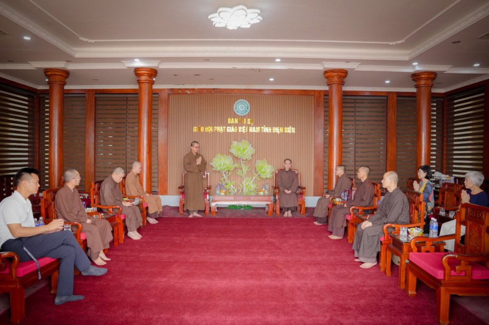 Trong không khí ấm tình đạo vị, Thầy Minh Huệ đại diện Tăng thân và Phật tử Tu viện Khánh An đã gửi lời vấn an đến Thượng tọa Thích Đức Thiện – Phó Chủ tịch kiêm Tổng Thư ký Trung ương GHPGVN, Trưởng Ban Trị sự GHPGVN tỉnh, đồng thời bày tỏ lòng tri ân sâu sắc trước sự kết nối và trợ duyên cho chuyến đi.