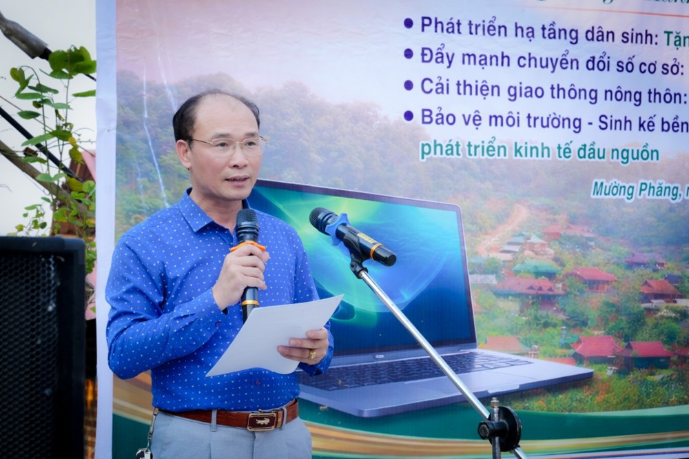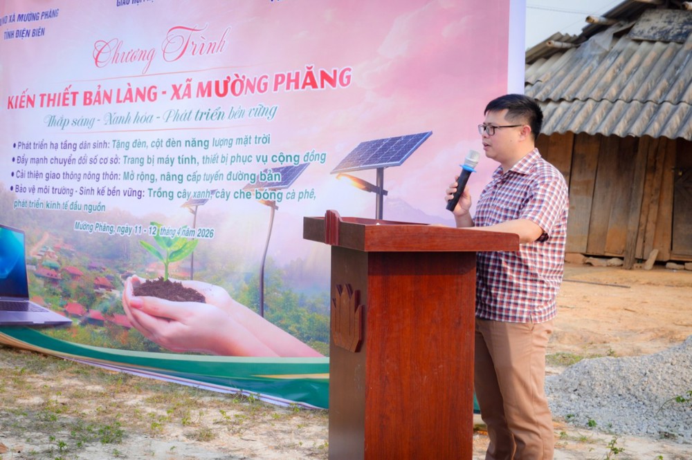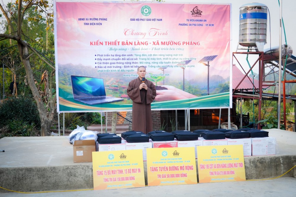 Buổi chiều cùng ngày, đoàn trở lại xã Mường Phăng, tiếp tục trao tặng 14 bộ máy tính và 14 máy in cho 14 bản làng, góp phần hỗ trợ công tác quản lý, hành chính và học tập tại cơ sở. Đồng thời, đoàn khởi công mở rộng tuyến đường bản Ten từ 2m lên 4m với kinh phí 50 triệu đồng, trao 135 đèn năng lượng mặt trời và lắp đặt 30 bộ cột đèn chiếu sáng, nâng tổng giá trị các hạng mục lên 433.012.000 đồng.