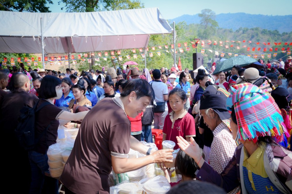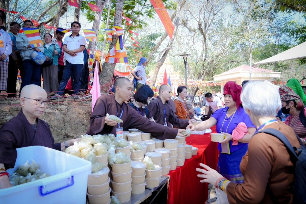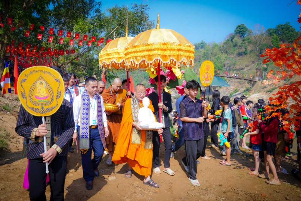 Trong không gian thấm đượm tinh thần văn hóa bản địa, Hòa thượng đã cử hành nghi thức “buộc chỉ tay” theo phong tục của đồng bào Lào – Thái, trao gửi lời chúc phúc và bình an đến người dân. Cùng với đó, chư Tôn đức cử hành lễ cầu an đầu năm, tạo nên một không gian vừa linh thiêng, vừa ấm áp, nơi đạo và đời hòa quyện trong sự an lành.