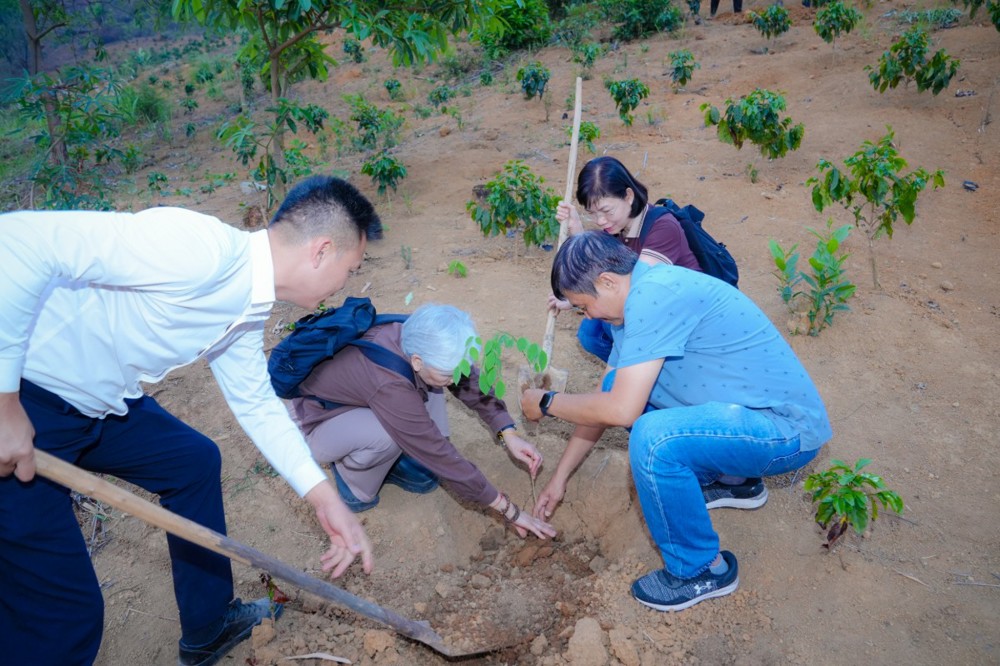Khép lại ngày đầu tiên, đoàn cùng bà con trực tiếp trồng những cây xanh đầu tiên trên đồi, như một lời gửi gắm cho một tương lai xanh đang dần được hình thành.