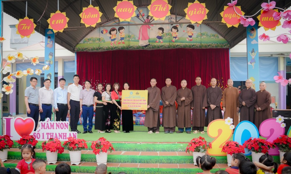 Sáng ngày 14/4/2026, đoàn đến xã Thanh An trao quà tại trường Mầm non Bán trú số 1. Tại đây, 700 bộ chăn, chiếu, gối với tổng trị giá 66,5 triệu đồng được trao đến các em học sinh, góp phần cải thiện điều kiện sinh hoạt và học tập.