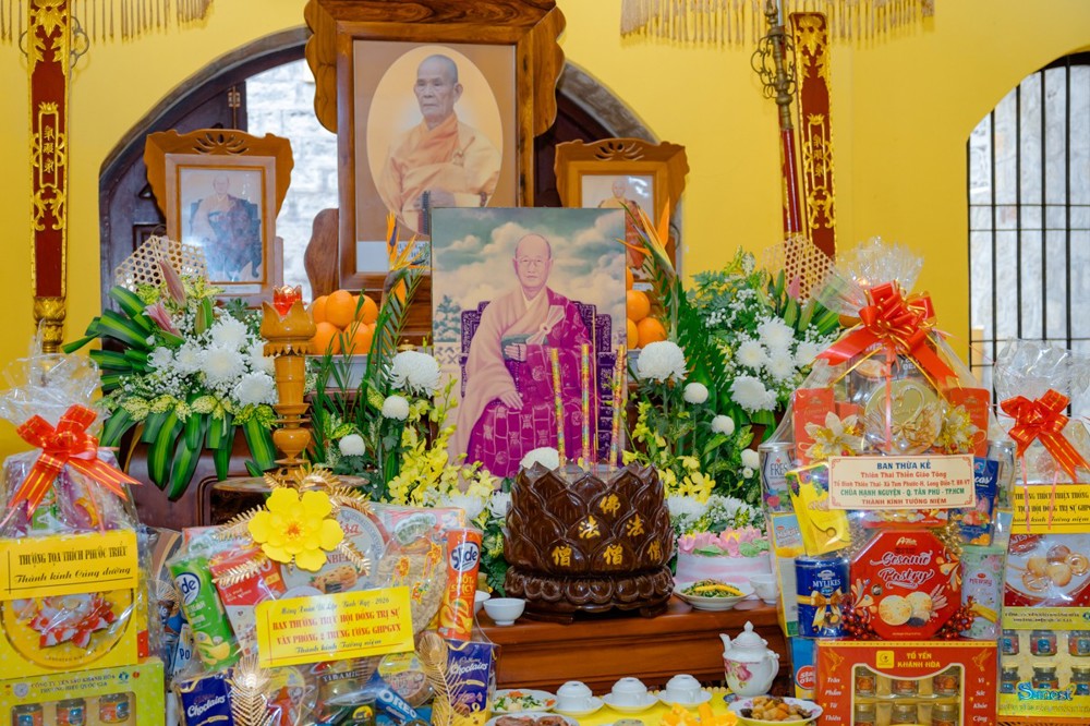 Sáng 14/2 ( nhằm ngày 27 tháng Chạp) Trưởng lão Hòa thượng Thích Thiện Nhơn, Trưởng lão Hòa thượng Thích Thiện Pháp cùng chư tôn giáo phẩm Hội đồng Chứng minh và Hội đồng Trị sự đã về tại Tổ đình Thiên Thai, tảo tháp chư liệt vị Tổ sư và dâng hương tưởng niệm húy kỵ Trưởng lão Hòa thượng Thích Minh Nguyệt – Phó Pháp chủ Hội đồng Chứng minh.