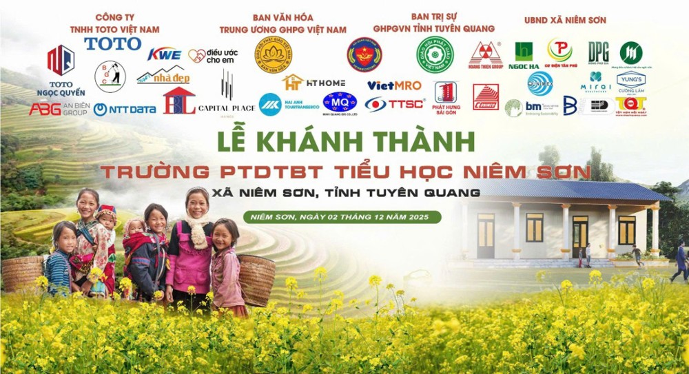 Được biết, ngày 03/3/2025, Ban Văn hóa Trung ương GHPGVN đã tiếp nhận bản đề xuất về thực trạng cơ sở vật chất của Trường PTDTBT Tiểu học Niêm Sơn có xác nhận của UBND xã. Sau chuyến khảo sát thực tế ngày 31/3/2025 của đoàn Ban Văn hóa và các doanh nghiệp, căn cứ nguyện vọng của nhà trường và địa phương, Ban đã triển khai xây dựng nhà bán trú với diện tích 120 m², gồm 2 phòng học (mỗi phòng 40 m²), 1 bể nước dự trữ dùng cho mùa khô cùng các trang thiết bị nội thất thiết yếu. Tổng kinh phí công trình là 700.000.000 đồng (bảy trăm triệu đồng).