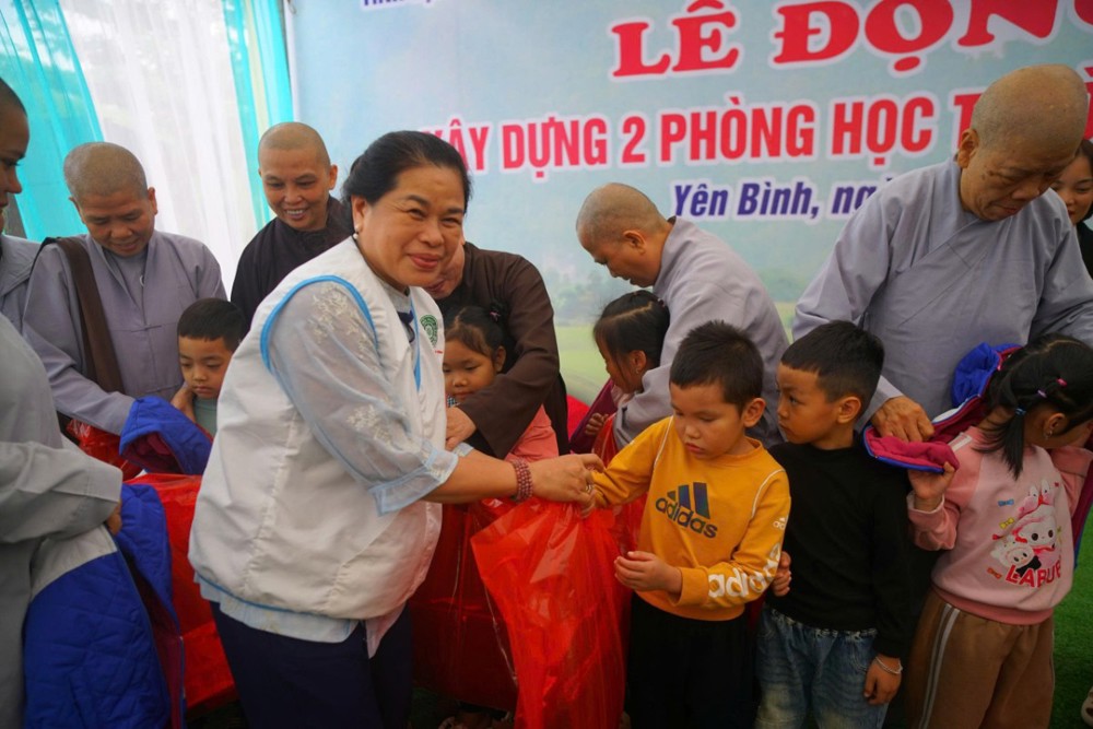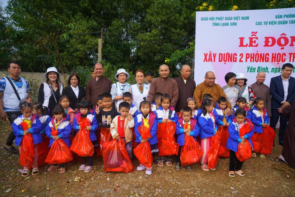 Tại buổi lễ, phái đoàn trao bảng tượng trưng trị giá 810 triệu đồng đến BTS GHPGVN tỉnh Lạng Sơn để đại diện giám sát và triển khai thi công công trình. Dịp này, đoàn cũng trao 210 phần quà và 134 phần quà gửi đến các điểm trường khác, mỗi phần trị giá 300.000 đồng gồm áo ấm, bánh, sữa và thuốc – tổng trị giá hơn 100 triệu đồng.