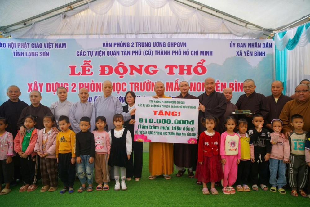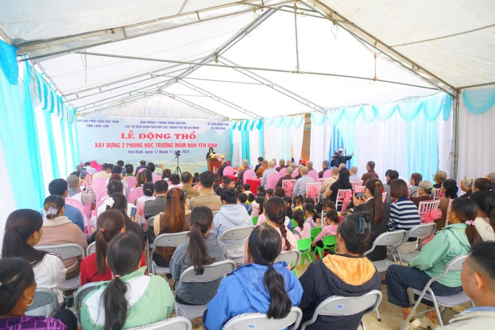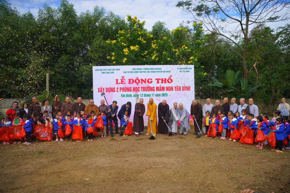 PSO – Sáng ngày 12/11/2025, trong chuyến cứu trợ đồng bào bị ảnh hưởng bởi bão lũ tại khu vực phía Bắc, Văn phòng 2 Trung ương GHPGVN đã đến Trường Mầm non Yên Bình (xã Yên Bình, tỉnh Lạng Sơn) để động thổ khởi công xây dựng hai phòng học mới cho các em học sinh nơi đây.